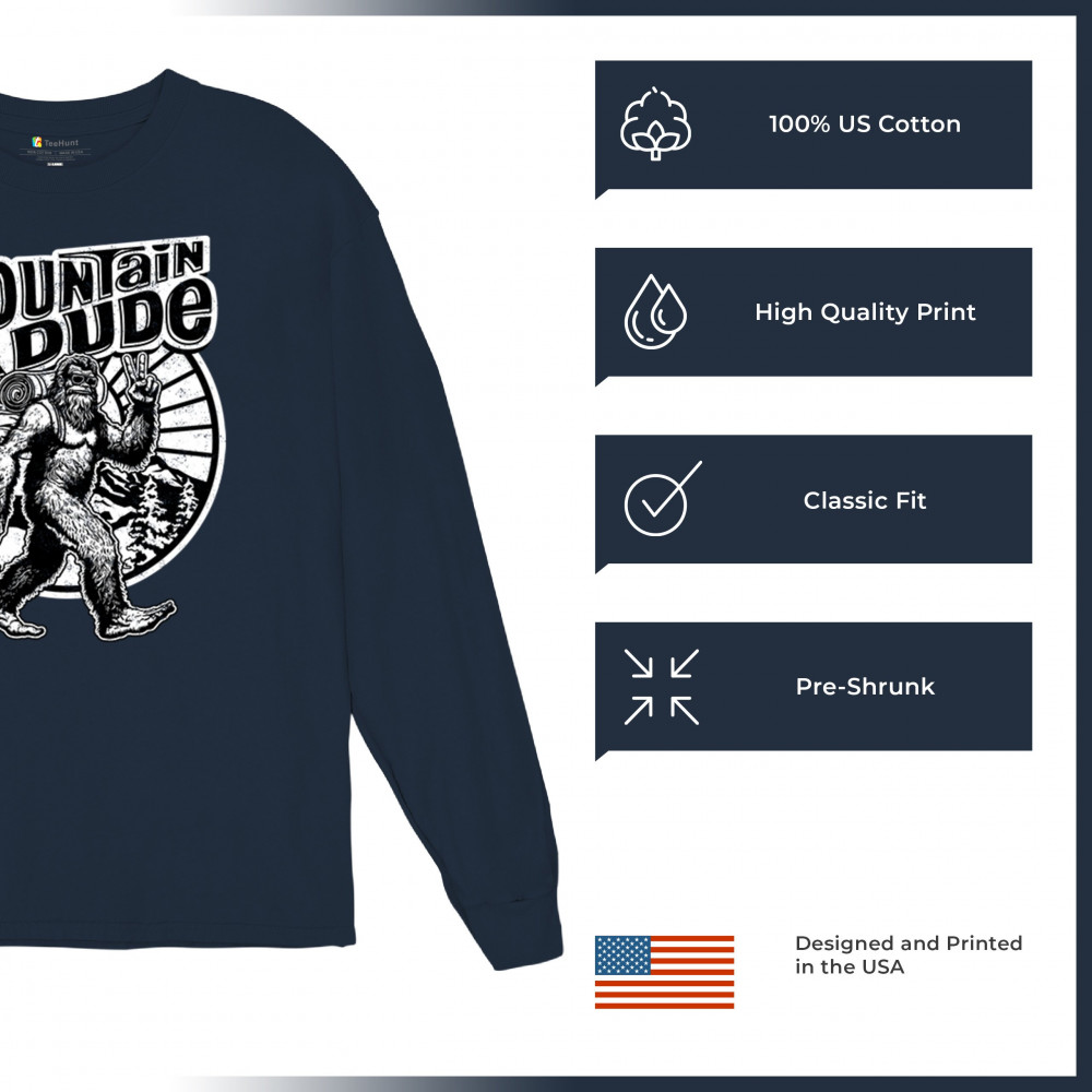 Celebrate outdoor adventures with the "Mountain Dude" design, featuring Sasquatch and mountain scenery. Perfect for hikers, campers, and Bigfoot fans.