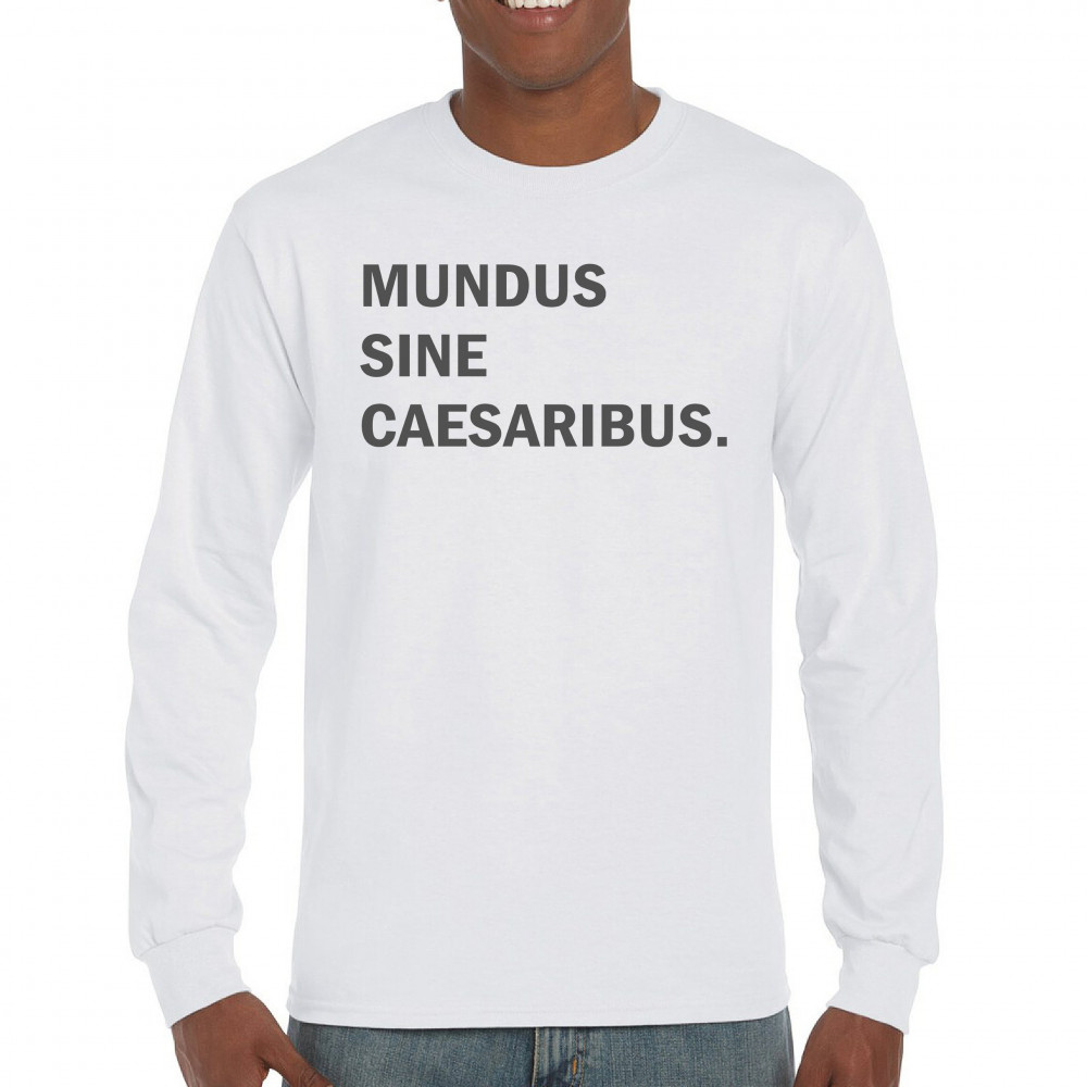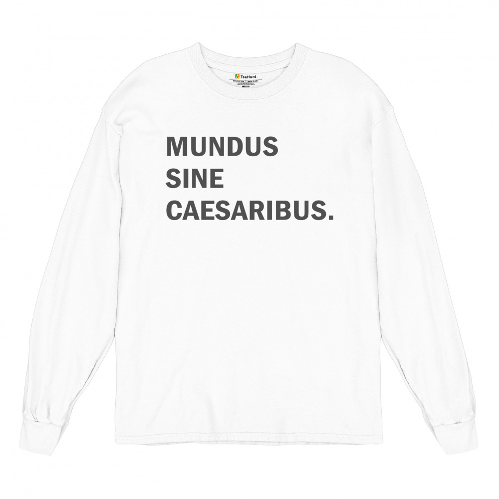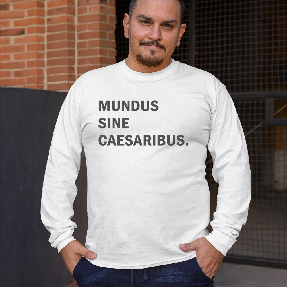 “Mundus Sine Caesaribus†Latin parody tee for rebels, meme lovers, and those tired of tech overlords. Make a witty anti-authority statement.
