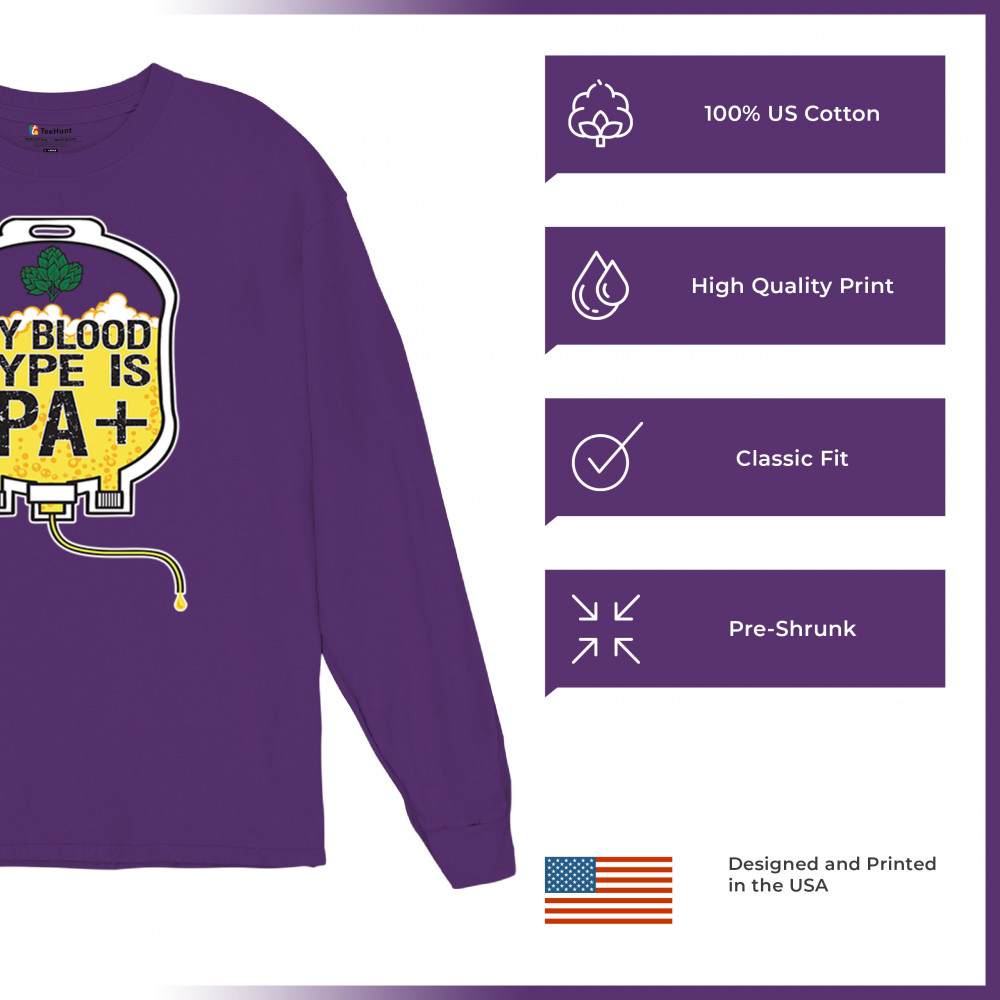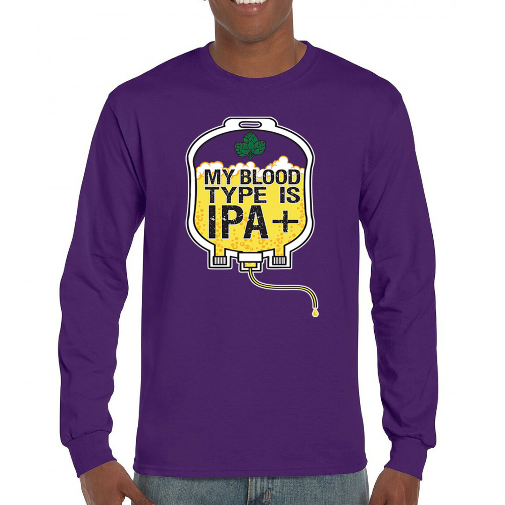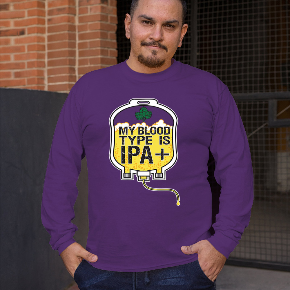 Bold and hilarious, this “My Blood Type Is IPA+†design features a dripping blood bag filled with frothy craft beer. The detailed hops and beer foam artwork make it perfect for IPA snobs, brew bros, and connoisseurs. Whether at a pub crawl or your local brewery, show your blood runs IPA with this standout design for beer lovers, hop heads, and festival fans.