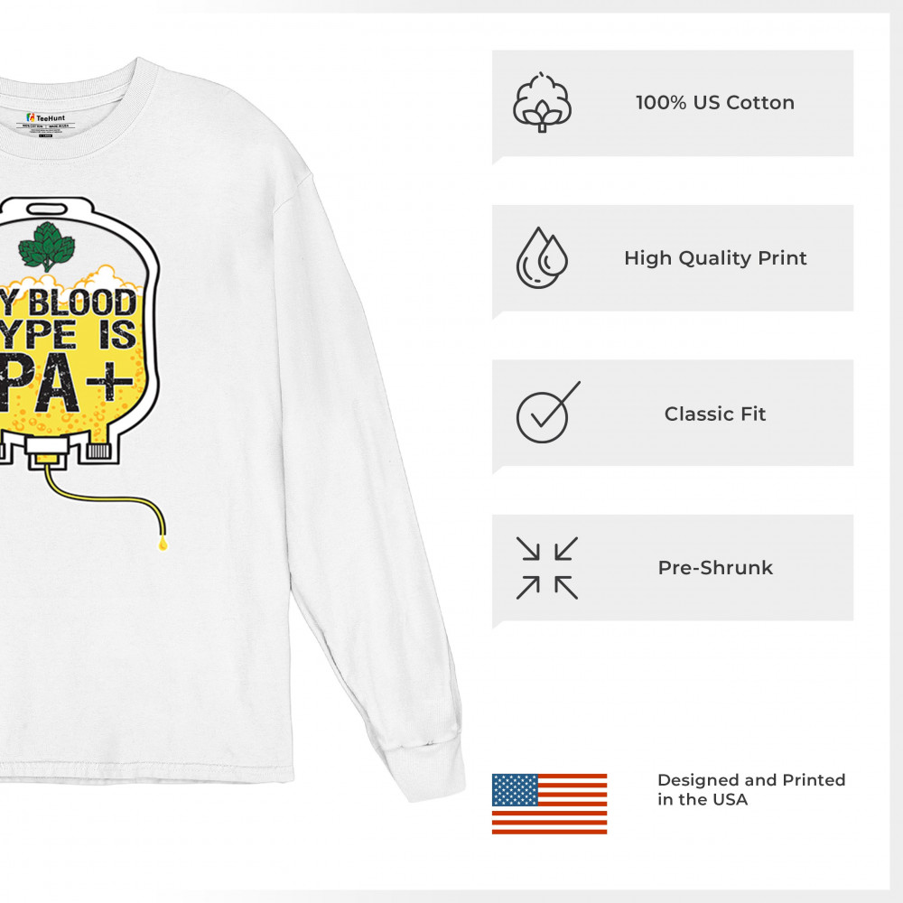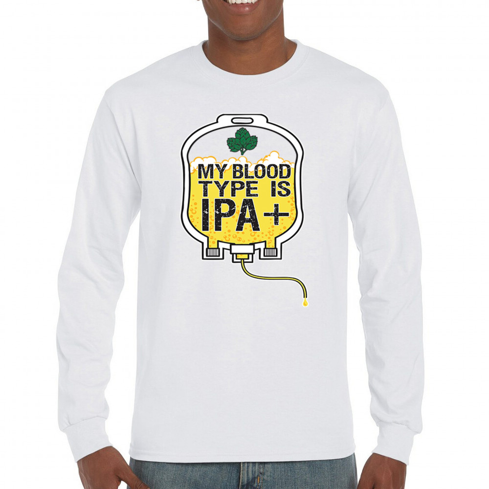 Funny IPA blood bag design for craft beer lovers, hop heads, and brewery fans. Bold beer humor with foamy details and hoppy charm.