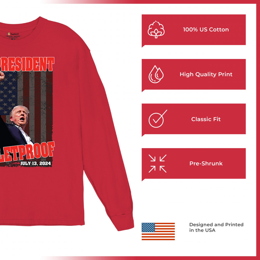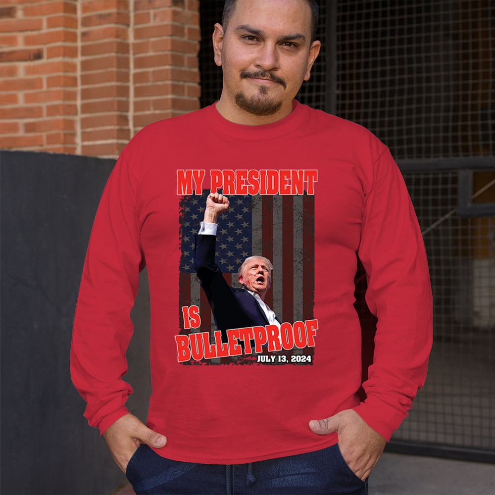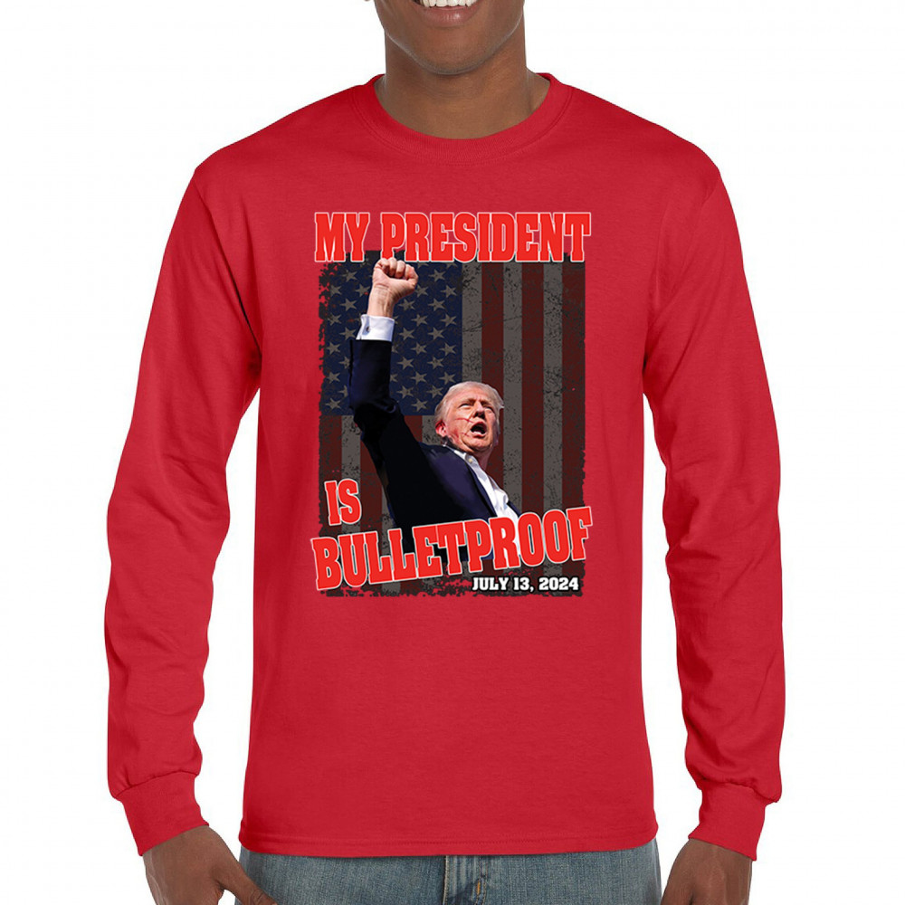Support Trump with our "My President is Bulletproof" design, perfect for rallies and everyday wear. Show your patriotic pride and conservative values.