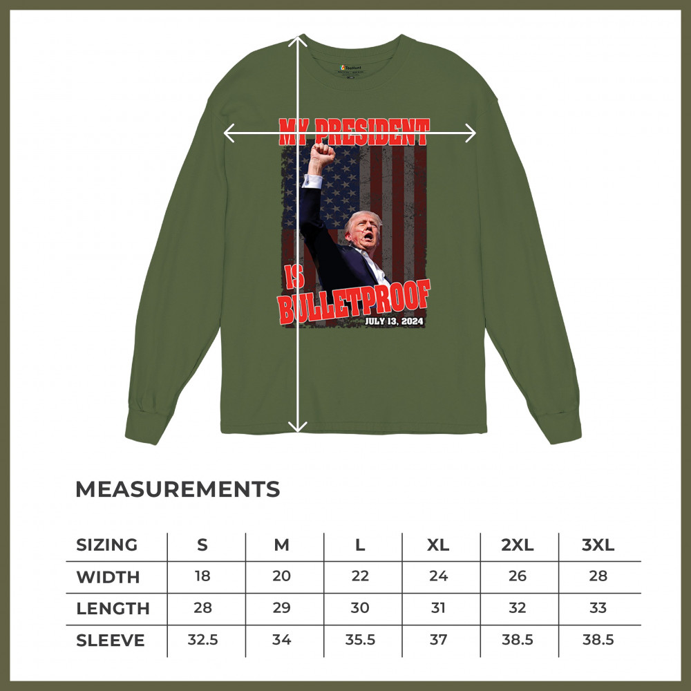 Support Trump with our "My President is Bulletproof" design, perfect for rallies and everyday wear. Show your patriotic pride and conservative values.
