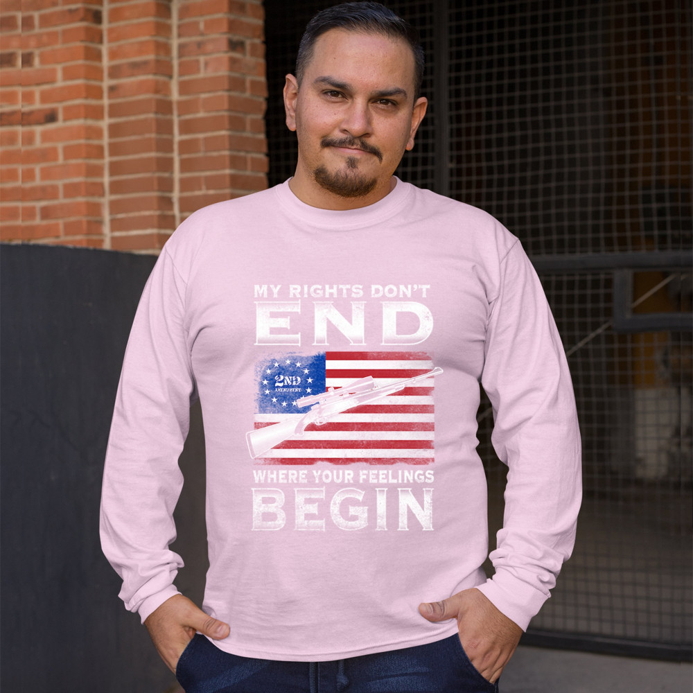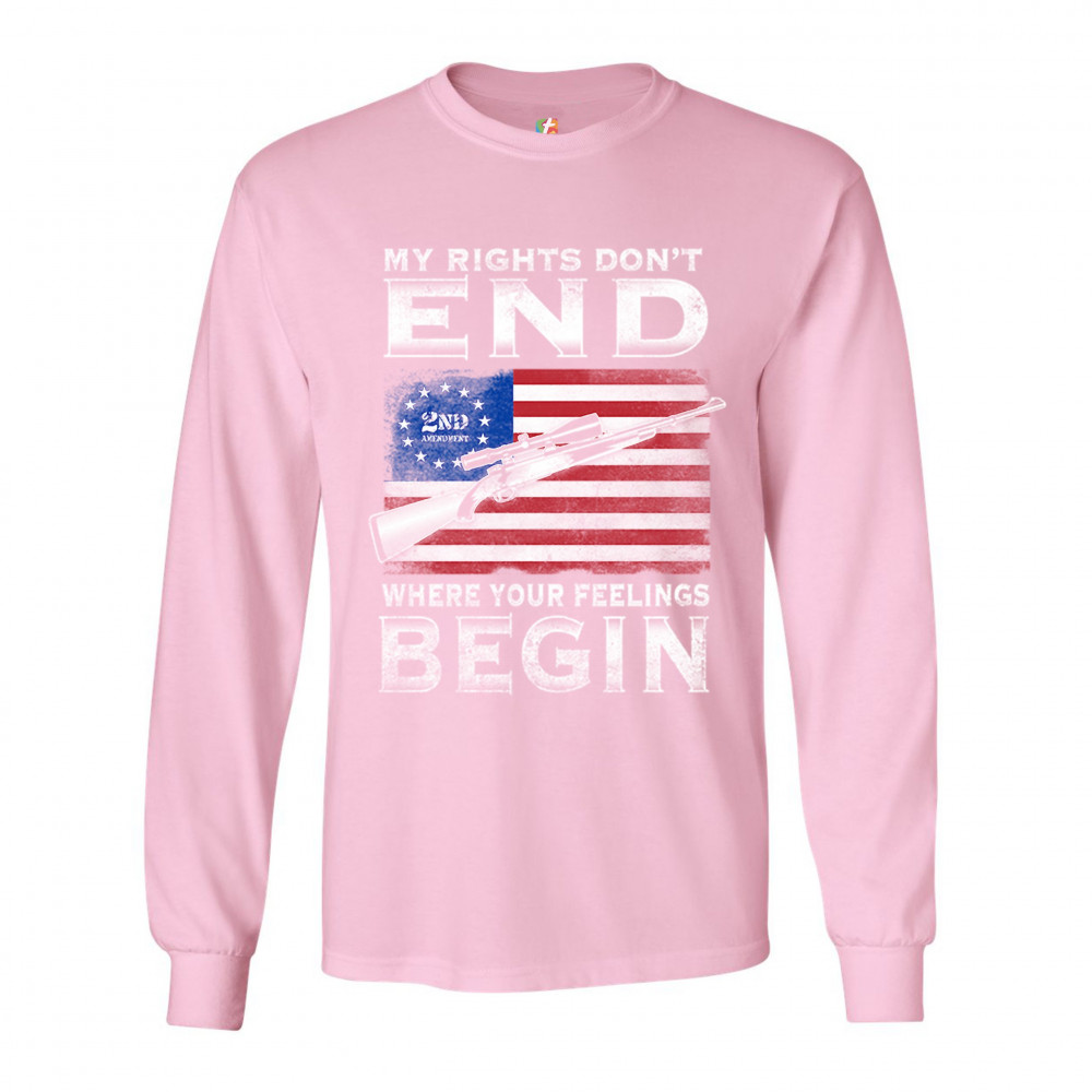 MY RIGHTS DON'T END WHERE YOUR FEELINGS BEGIN long sleeve t-shirt 2nd amendment pink
