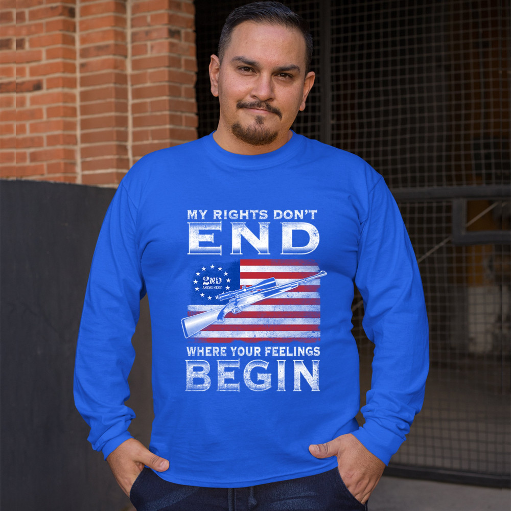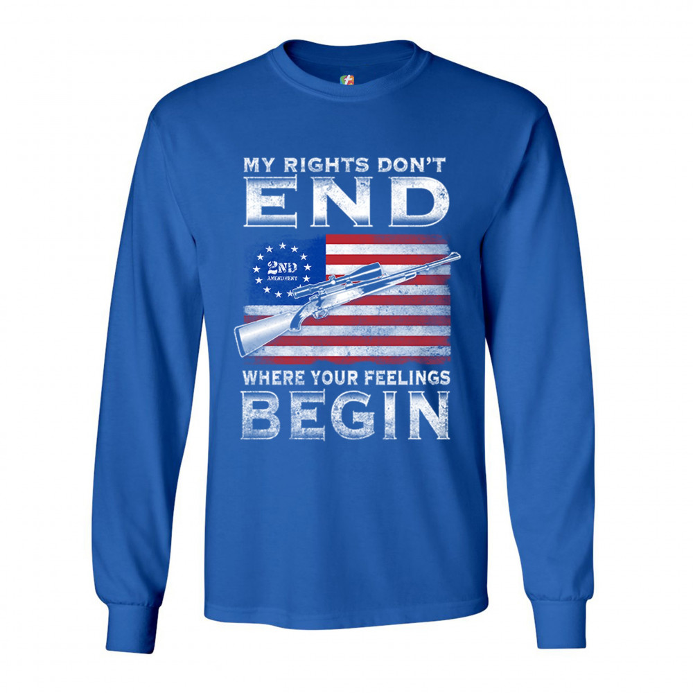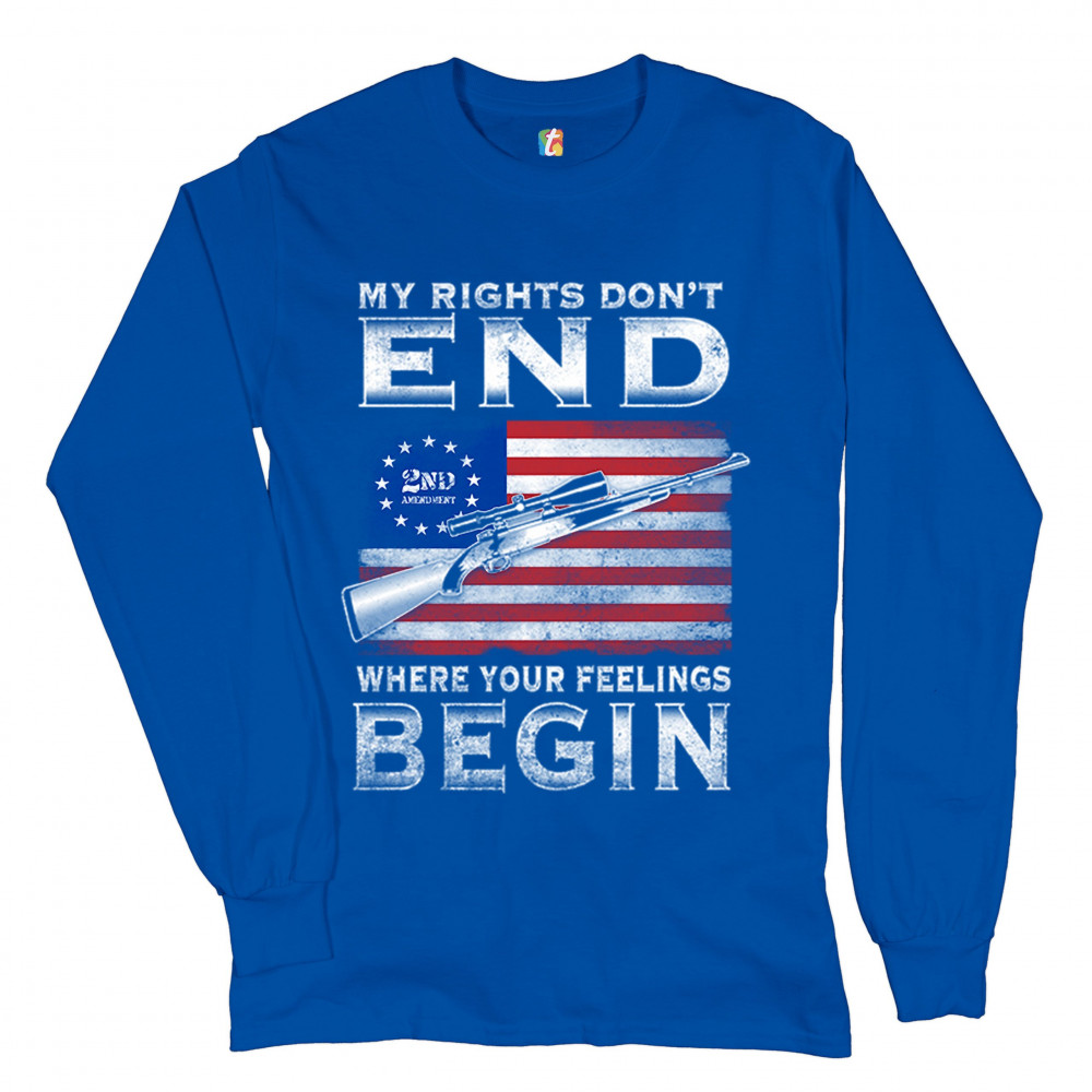MY RIGHTS DON'T END WHERE YOUR FEELINGS BEGIN long sleeve t-shirt 2nd amendment royal blue