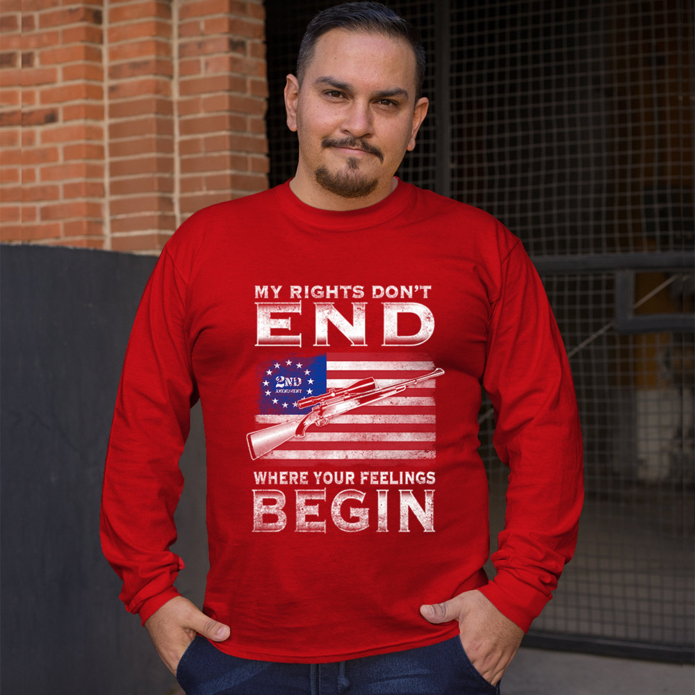 MY RIGHTS DON'T END WHERE YOUR FEELINGS BEGIN long sleeve t-shirt 2nd amendment red