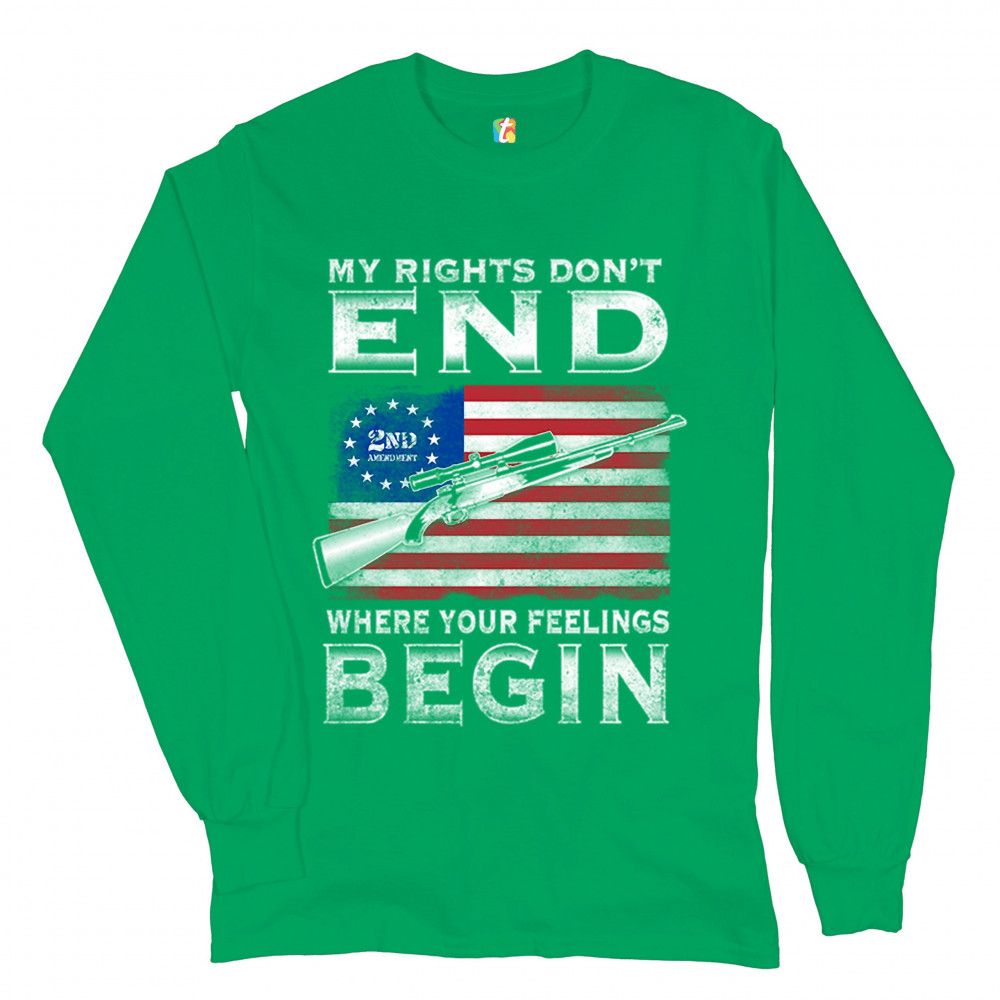 MY RIGHTS DON'T END WHERE YOUR FEELINGS BEGIN long sleeve t-shirt 2nd amendment green