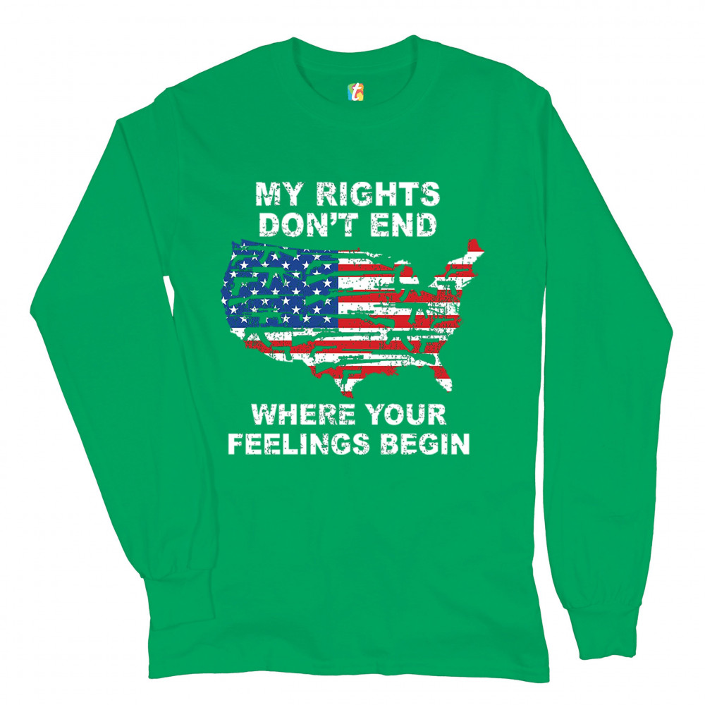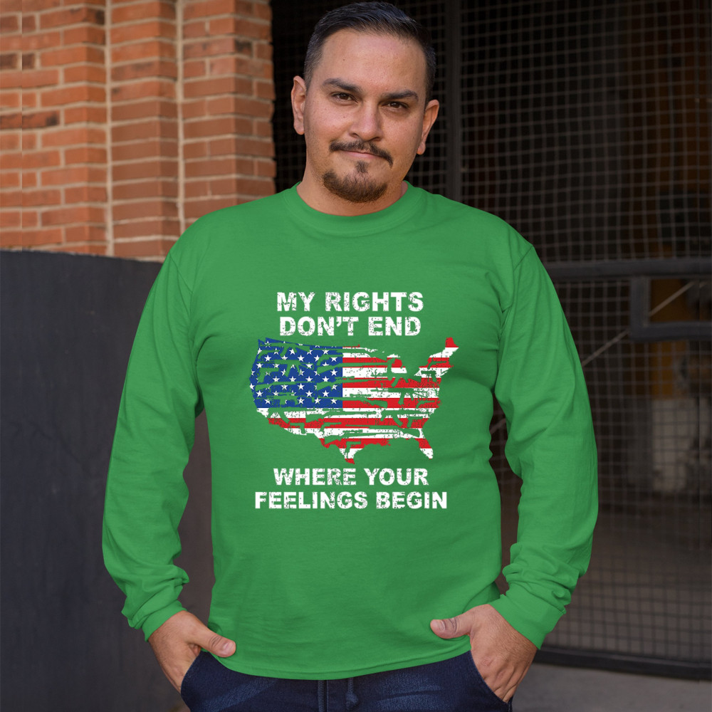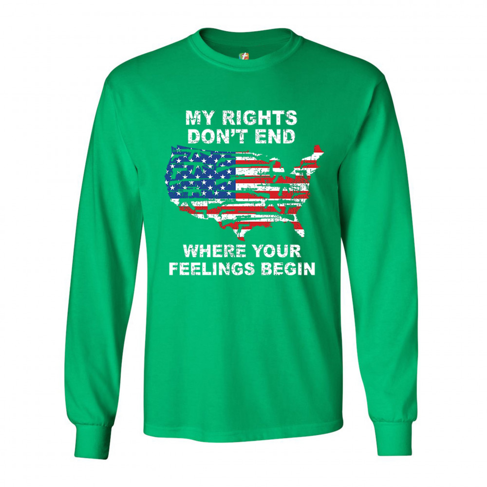MY RIGHTS DON'T END WHERE YOUR FEELINGS BEGIN long sleeve t-shirt usa pro guns green