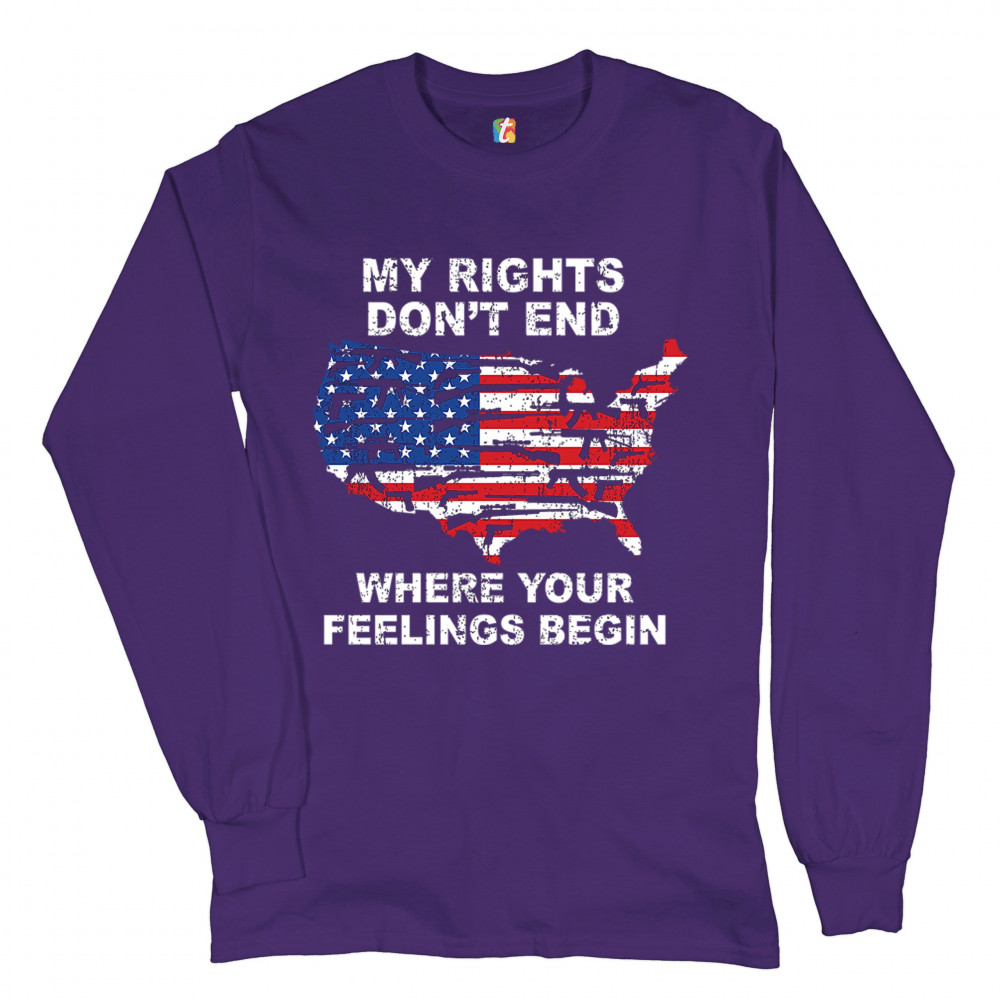 MY RIGHTS DON'T END WHERE YOUR FEELINGS BEGIN long sleeve t-shirt usa pro guns purple