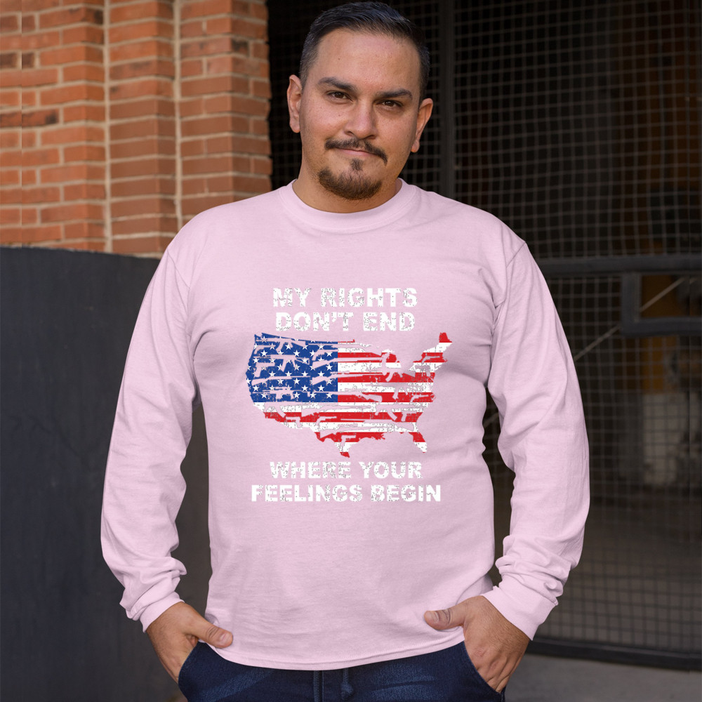 MY RIGHTS DON'T END WHERE YOUR FEELINGS BEGIN long sleeve t-shirt usa pro guns pink