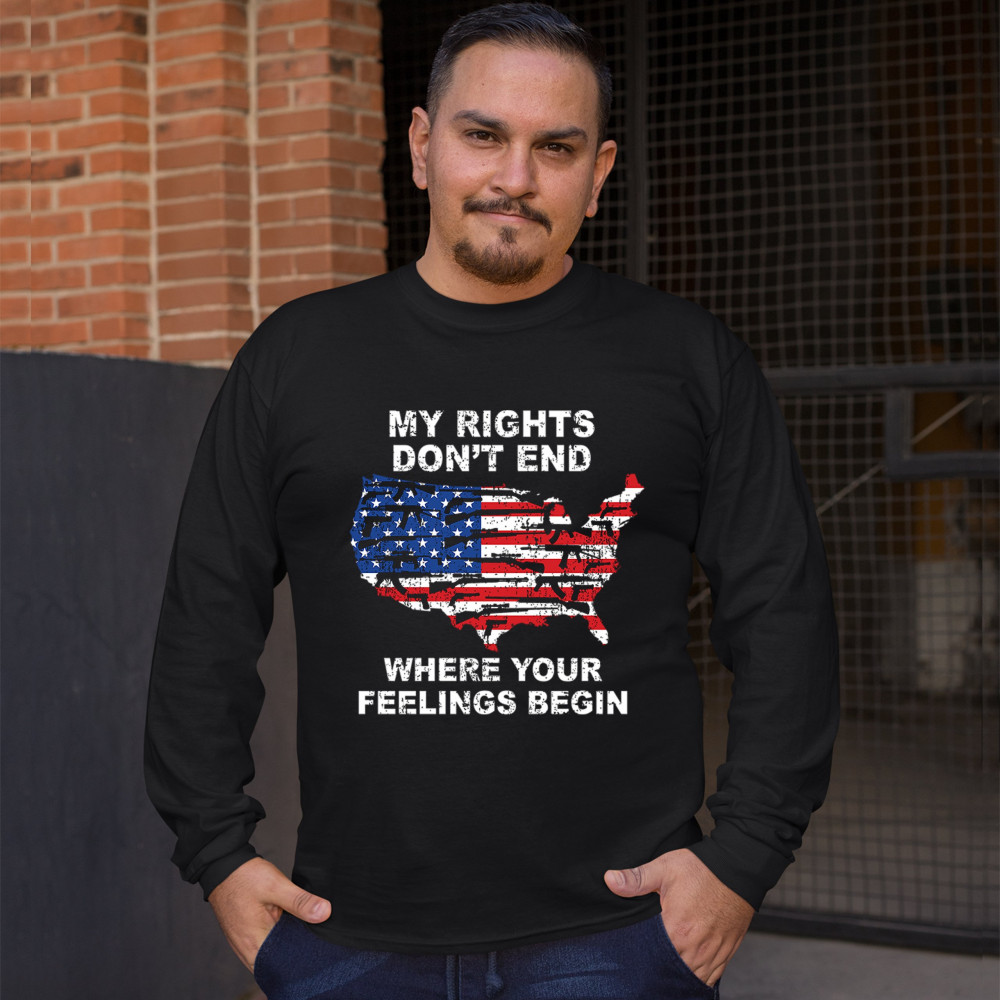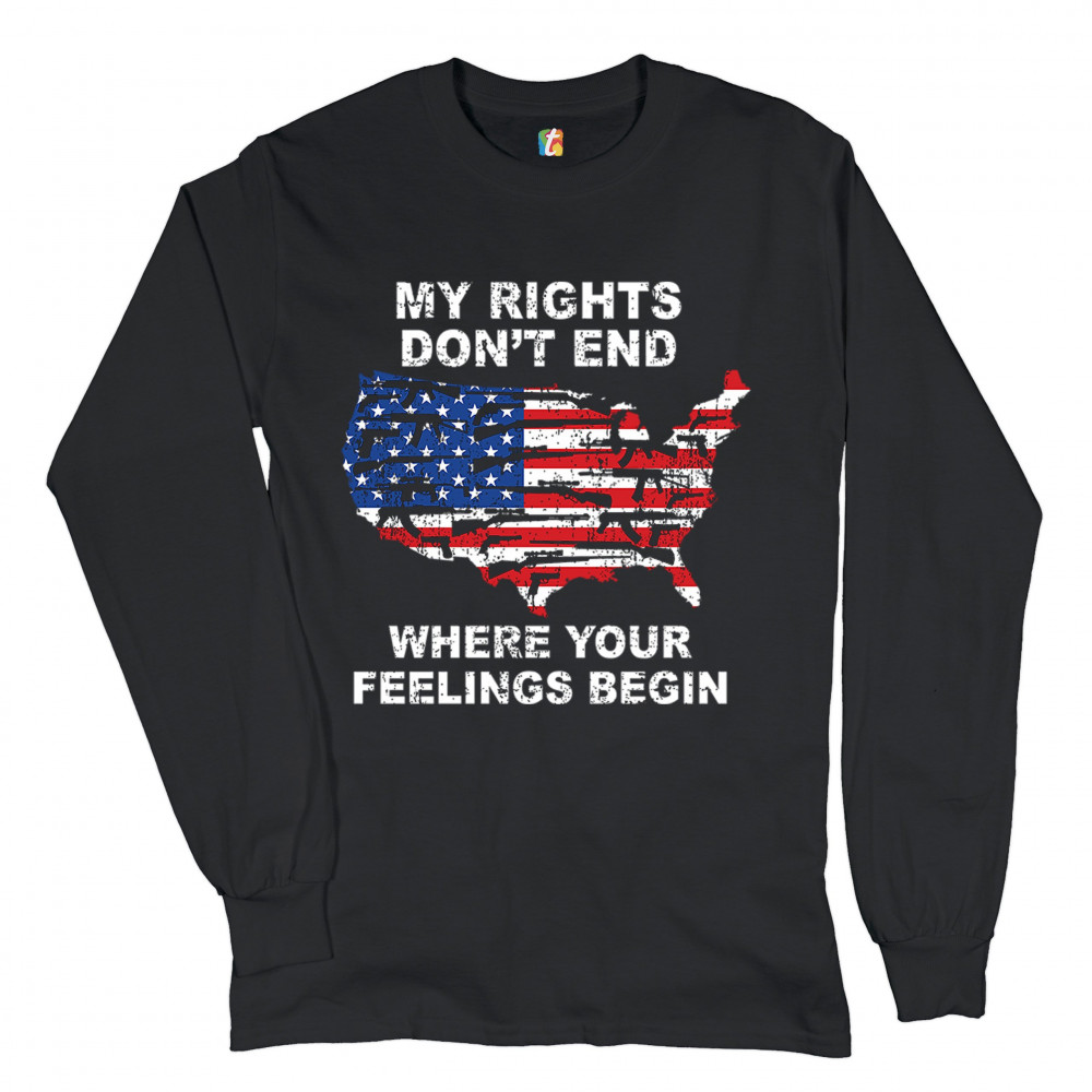 MY RIGHTS DON'T END WHERE YOUR FEELINGS BEGIN long sleeve t-shirt usa pro guns black