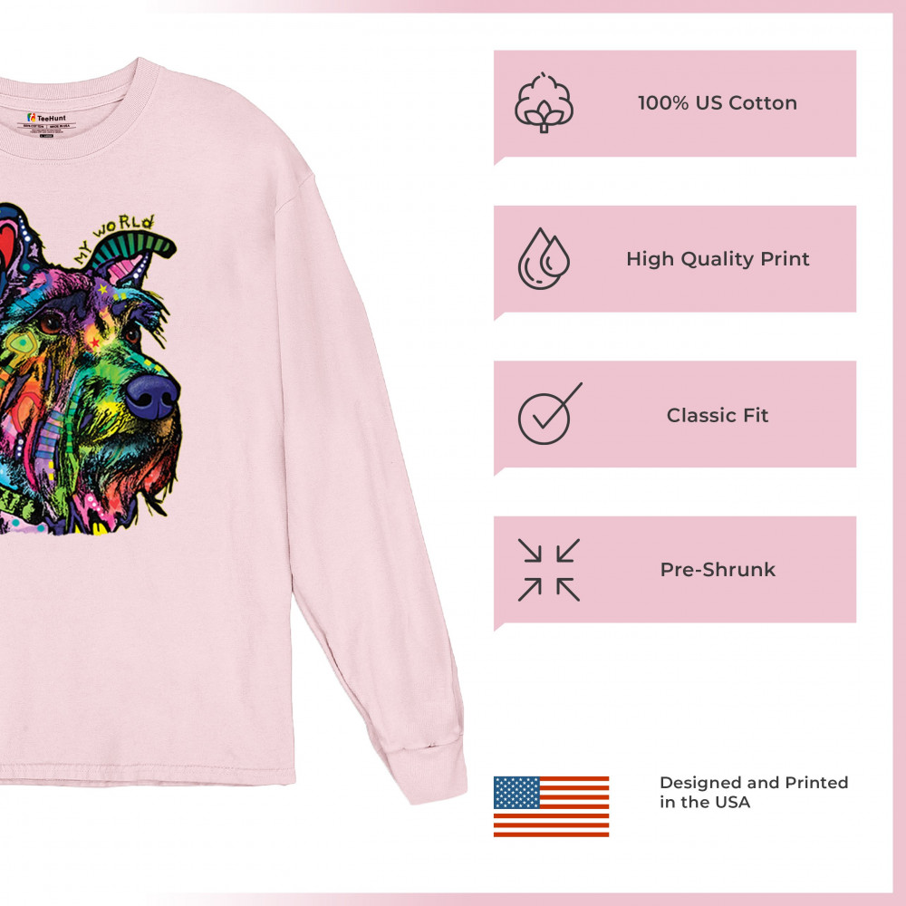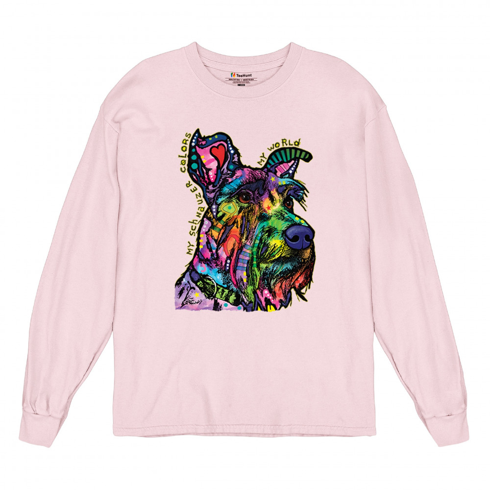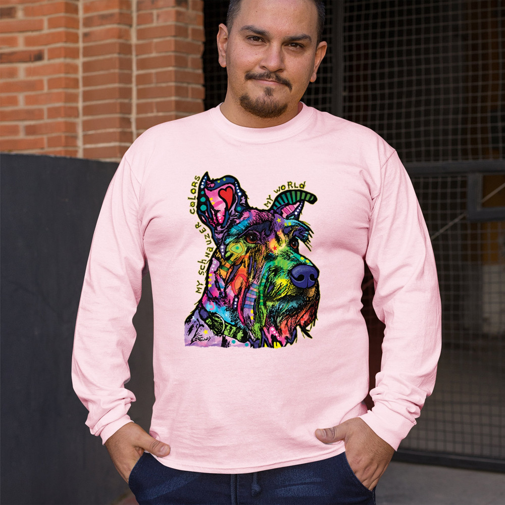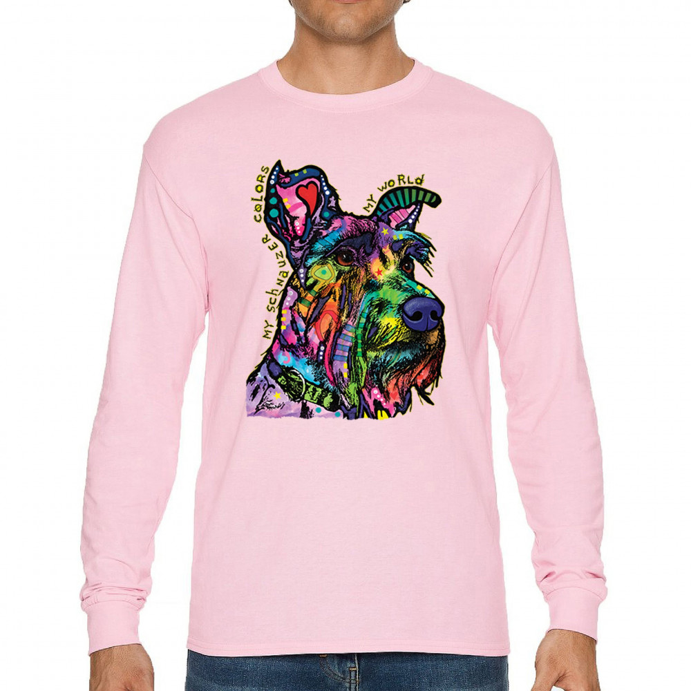 MY SCHNAUZER COLORS MY WORLD long sleeve t-shirt dean russo pet dog mom pink