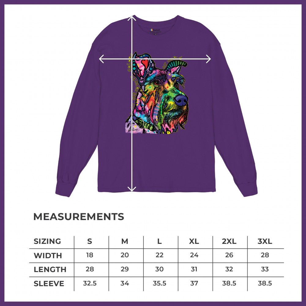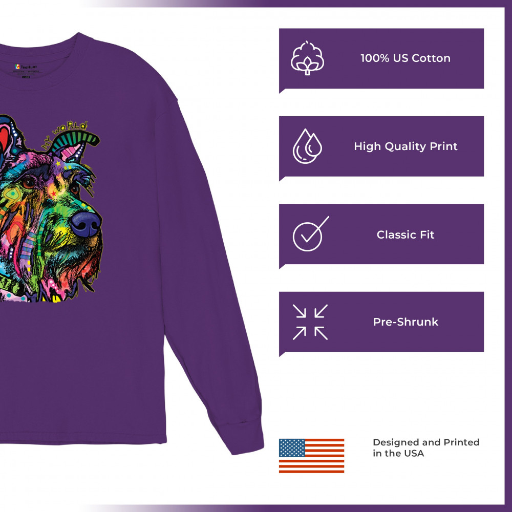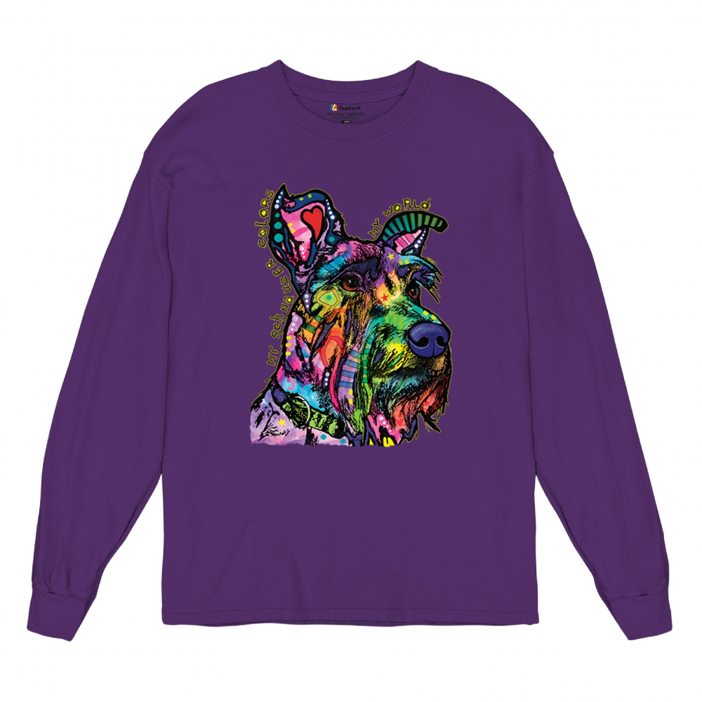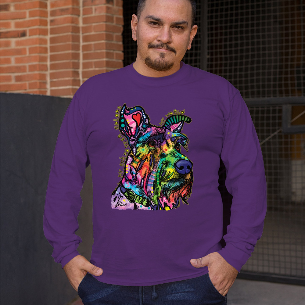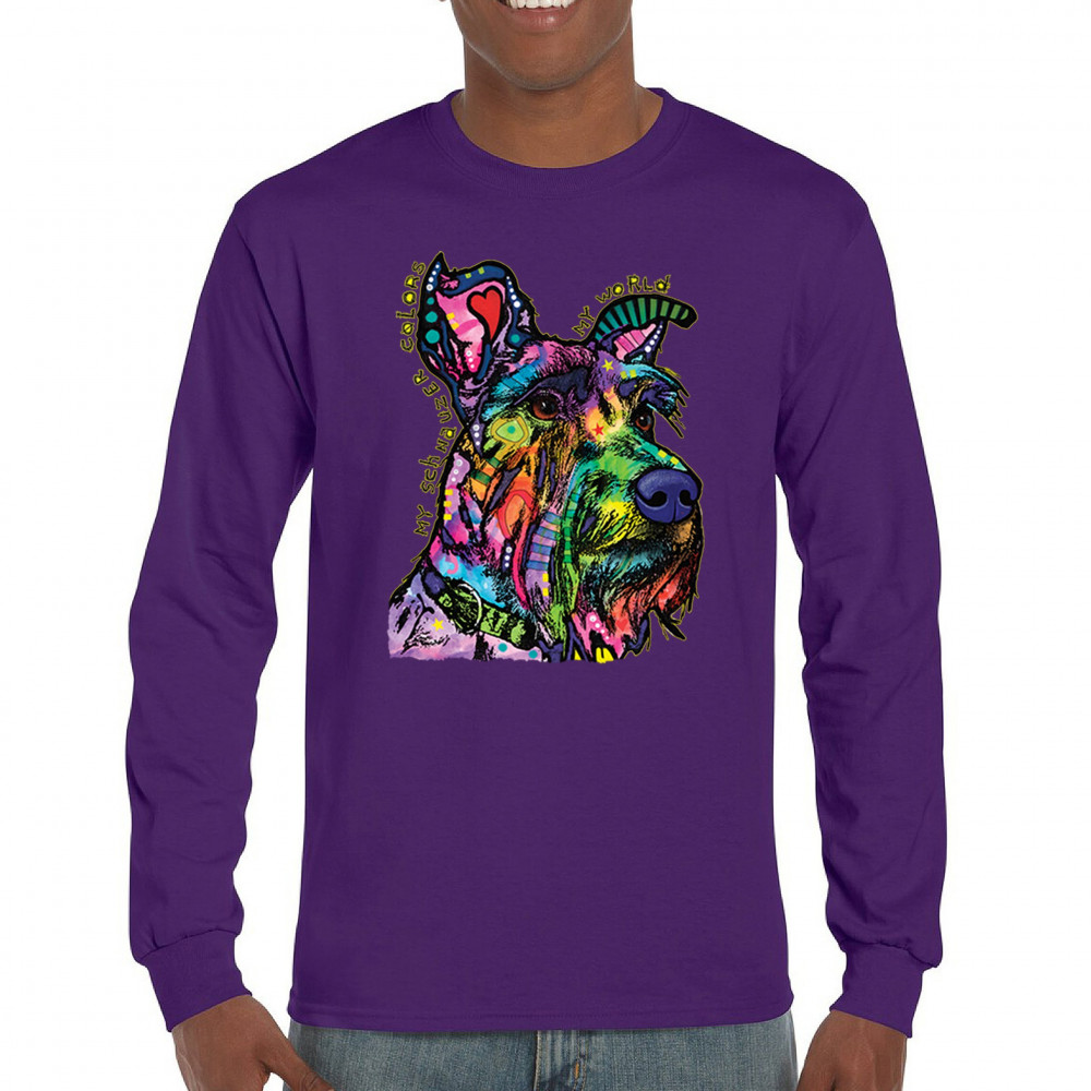 MY SCHNAUZER COLORS MY WORLD long sleeve t-shirt dean russo pet dog mom purple