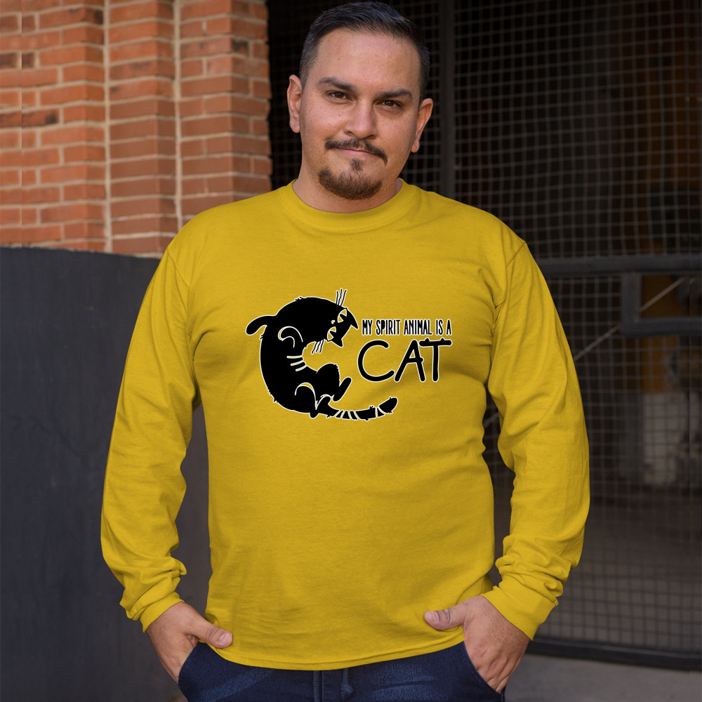 MY SPIRIT ANIMAL IS A CAT long sleeve t-shirt cute kitty funny kitten yellow