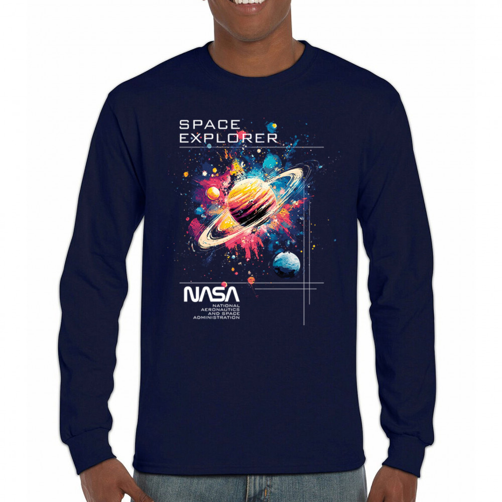 Bold and inspiring, this NASA Space Explorer design features Saturn in a cosmic paint splash with official branding. Ideal for fans of the Apollo program, moon landings, rocket launch history, and vintage NASA aesthetics. A great fit for space travel lovers, cosmic dreamers, and proud supporters of American exploration.