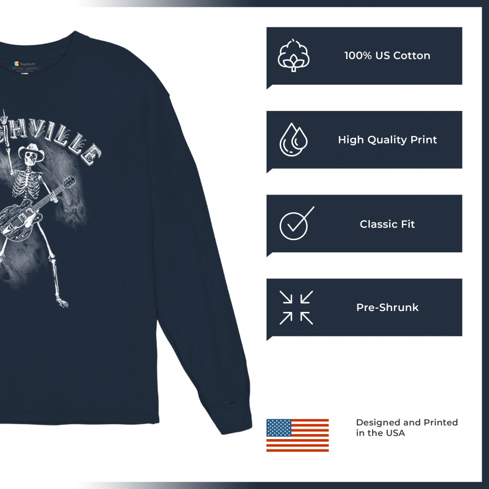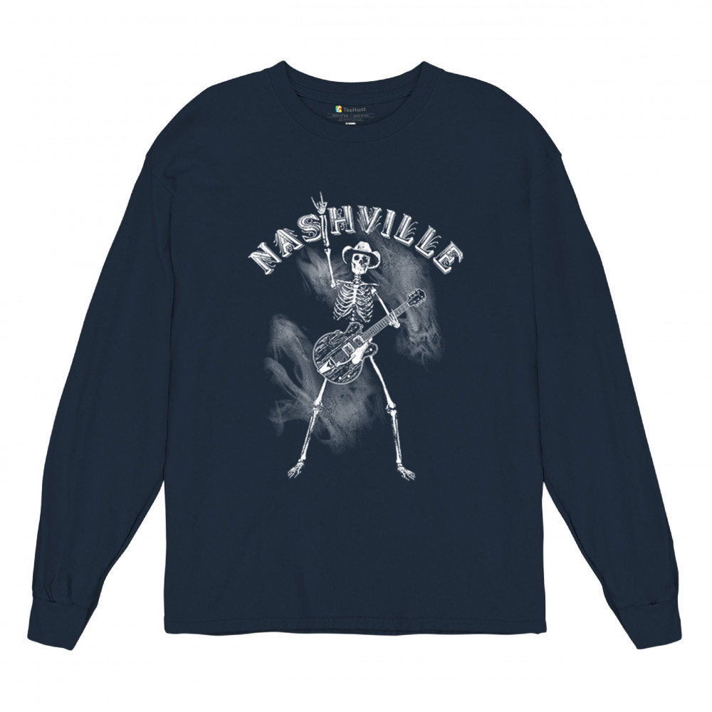 Bold skeleton cowboy design with Nashville grit and country rock vibes. Perfect for fans of music, guitars, and rebel southern style.