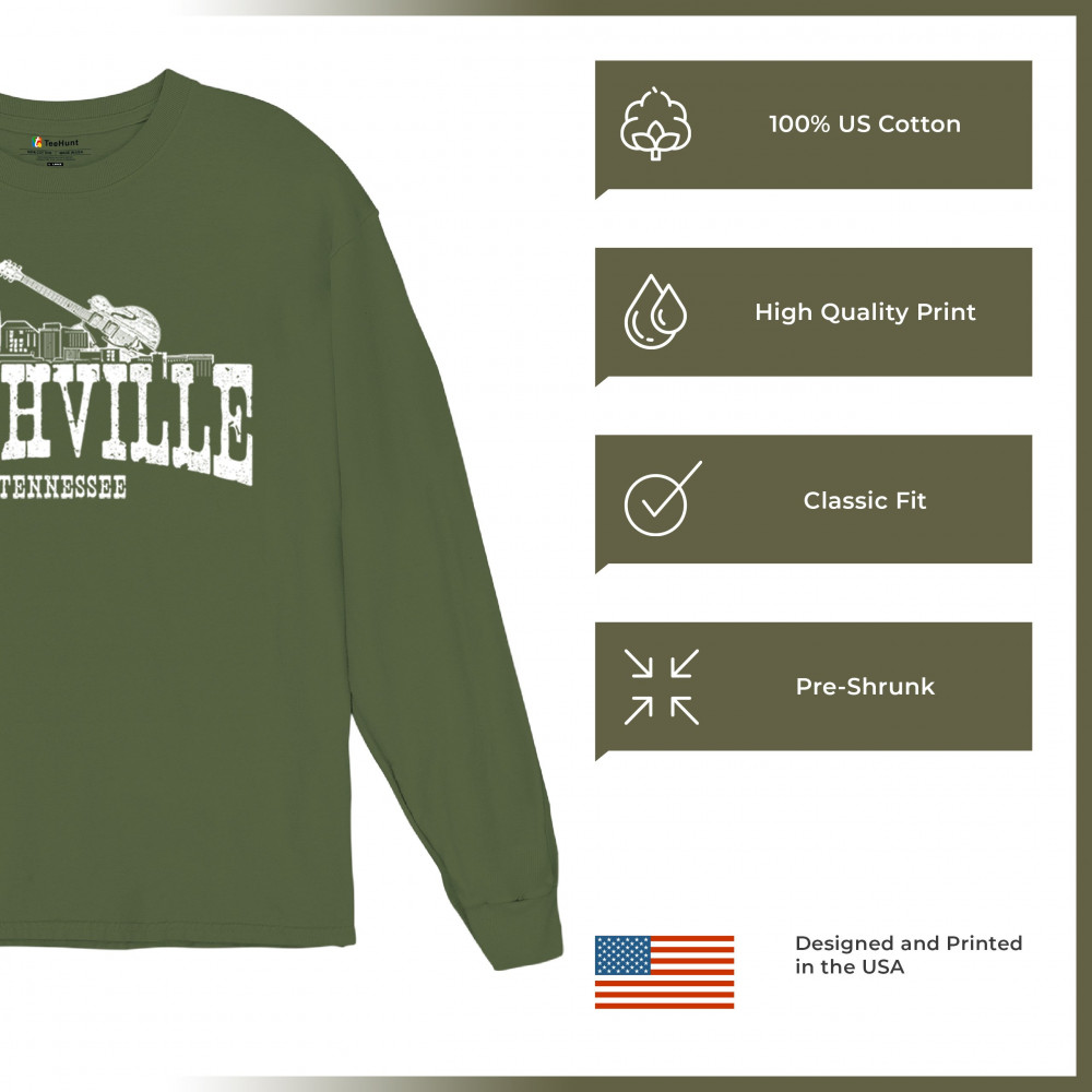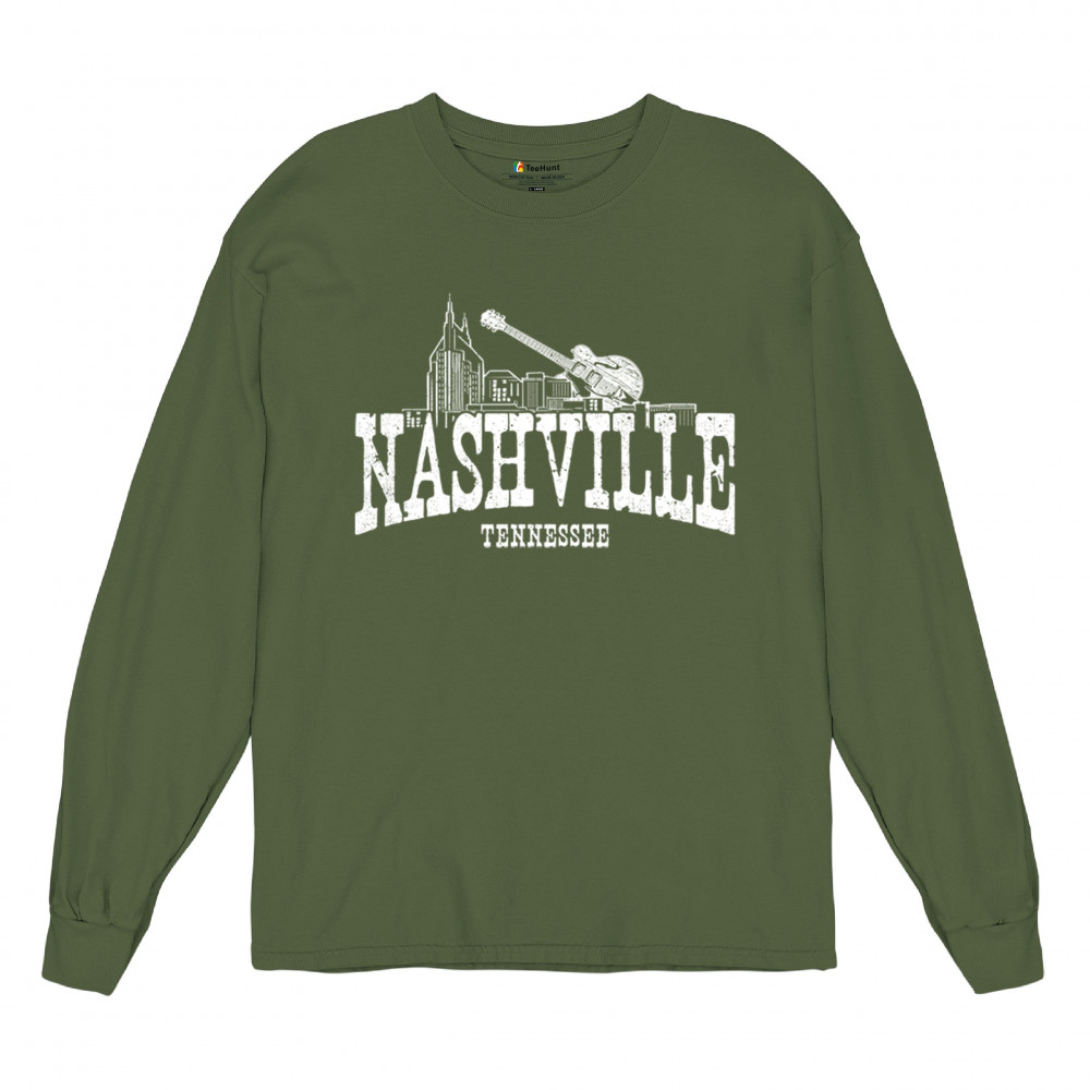 Celebrate the rhythm of Music City with this Nashville design featuring a detailed skyline and classic guitar illustration. Whether you're exploring downtown Tennessee, heading to a concert, or repping southern pride on the road, this vintage-inspired Nashville graphic brings iconic charm to any casual outing.