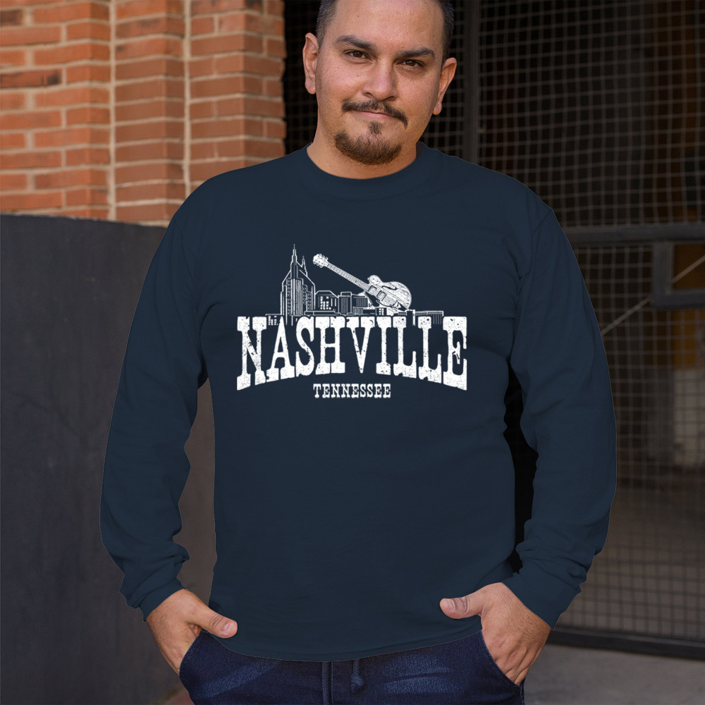 Celebrate the rhythm of Music City with this Nashville design featuring a detailed skyline and classic guitar illustration. Whether you're exploring downtown Tennessee, heading to a concert, or repping southern pride on the road, this vintage-inspired Nashville graphic brings iconic charm to any casual outing.