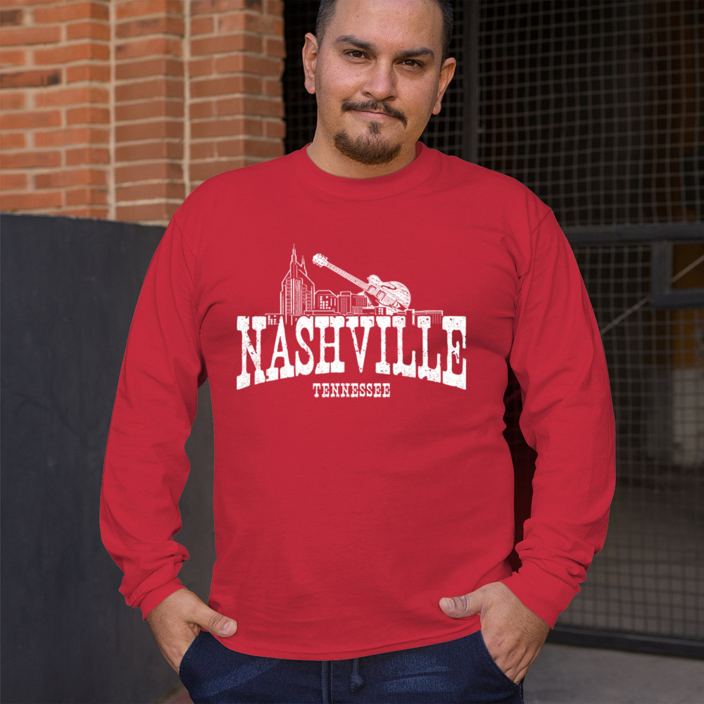 Celebrate the rhythm of Music City with this Nashville design featuring a detailed skyline and classic guitar illustration. Whether you're exploring downtown Tennessee, heading to a concert, or repping southern pride on the road, this vintage-inspired Nashville graphic brings iconic charm to any casual outing.