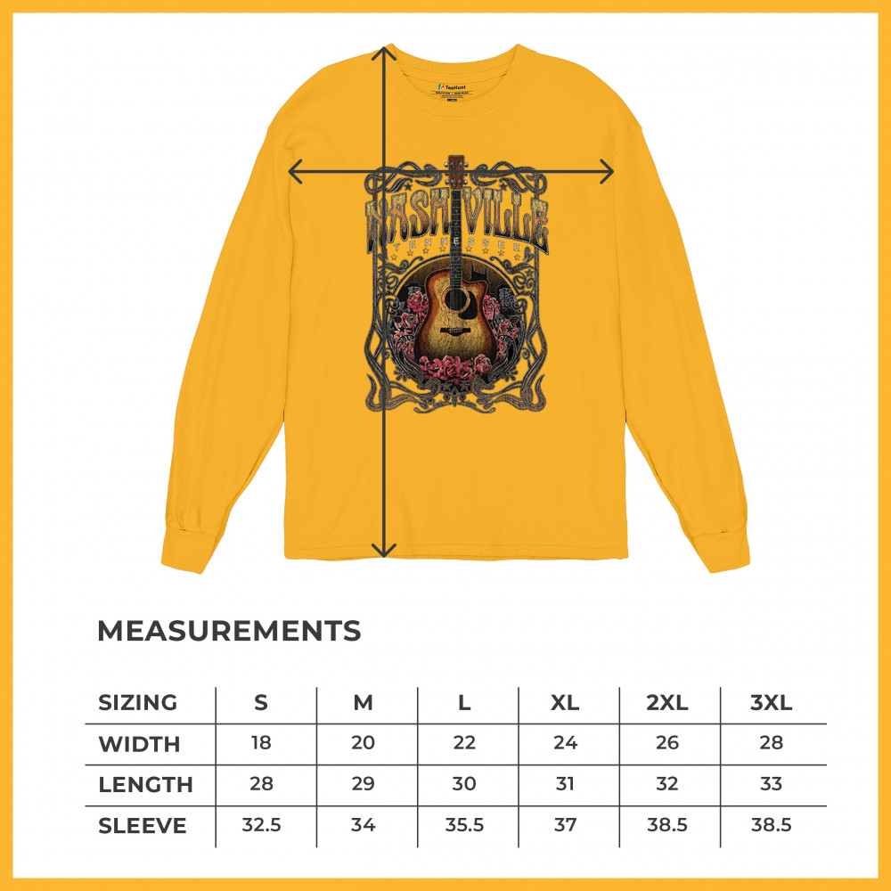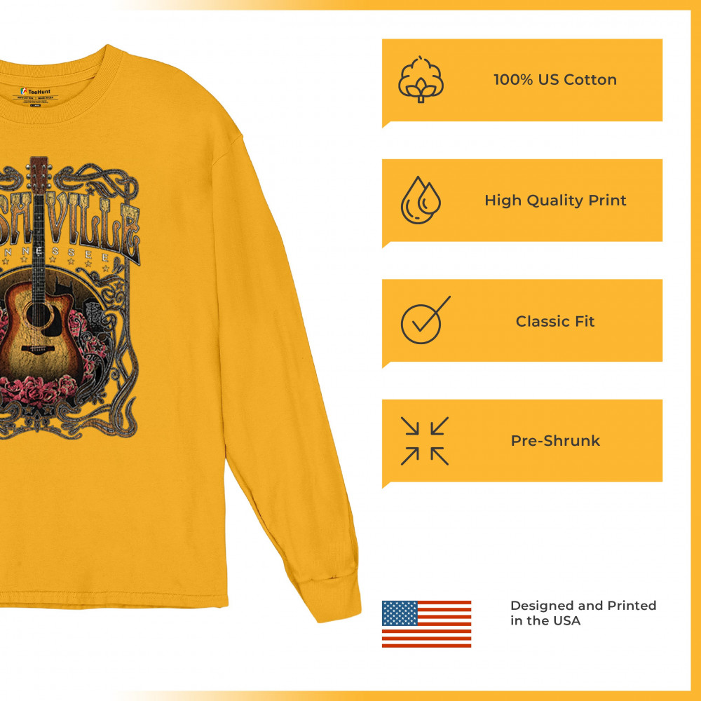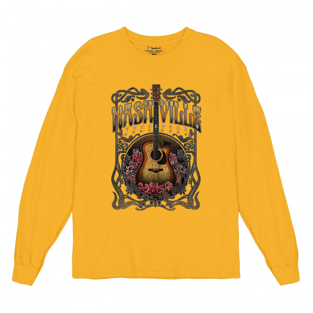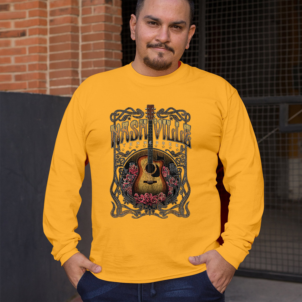 Vintage Nashville Tennessee design with rustic guitar and roses. Great for concerts, country music fans, road trips, and souvenir wear.