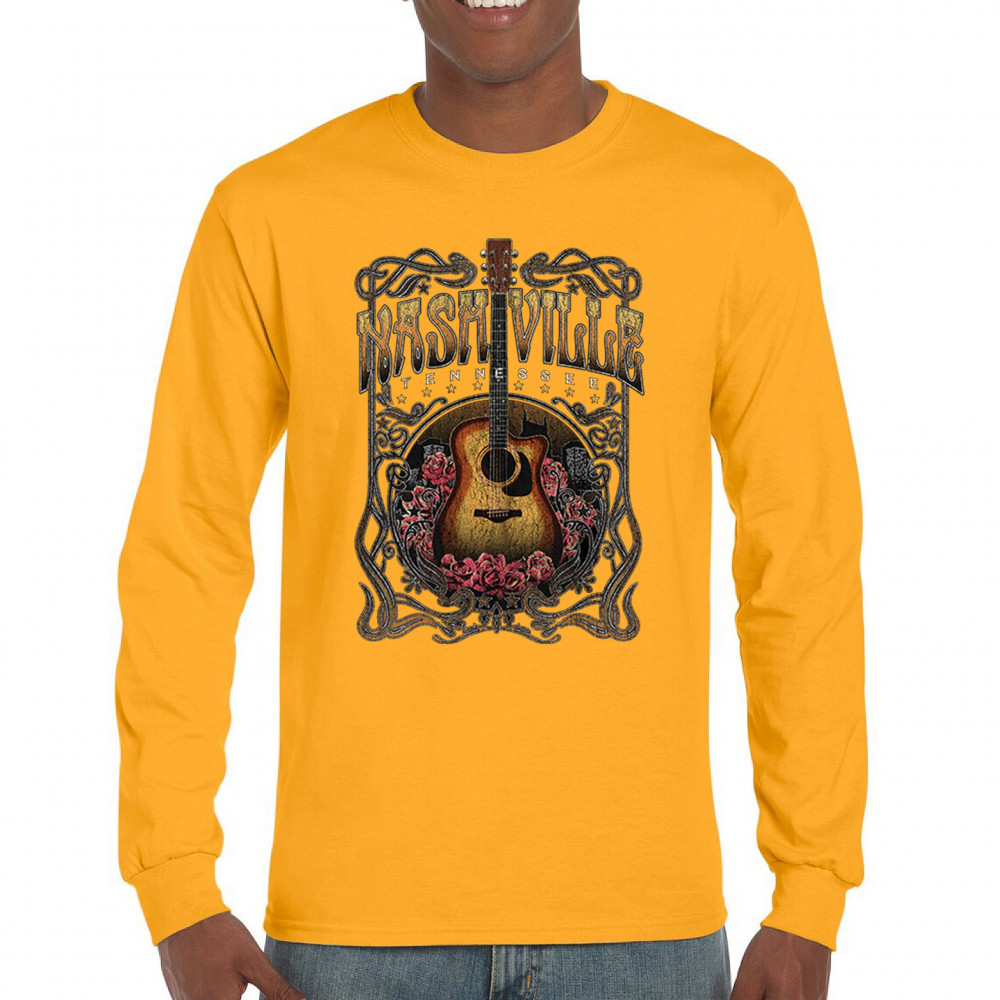 Celebrate the musical soul of Nashville with this vintage guitar and roses design. Perfect for fans of country, bluegrass, and folk music, it captures the charm of Music City with Western-style artwork. Great as a souvenir or for wearing to concerts, tours, and Tennessee road adventures.