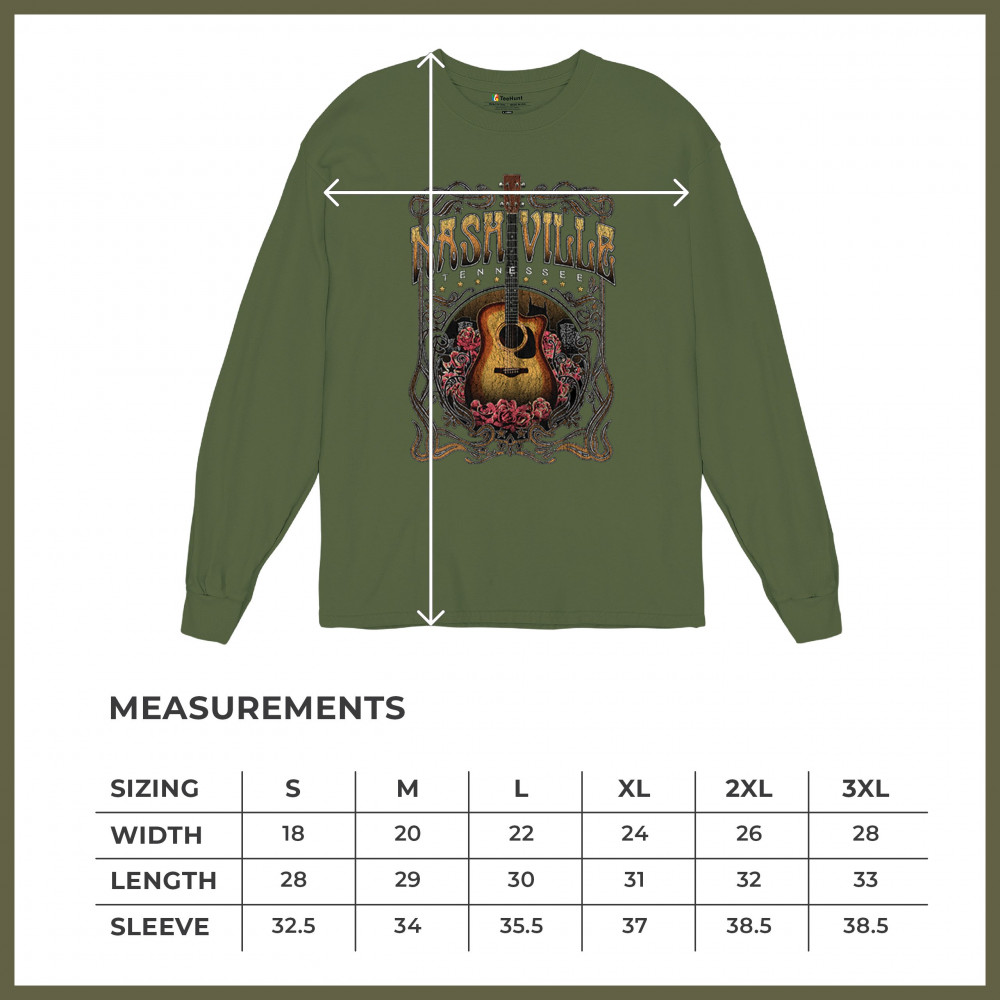 Celebrate the musical soul of Nashville with this vintage guitar and roses design. Perfect for fans of country, bluegrass, and folk music, it captures the charm of Music City with Western-style artwork. Great as a souvenir or for wearing to concerts, tours, and Tennessee road adventures.