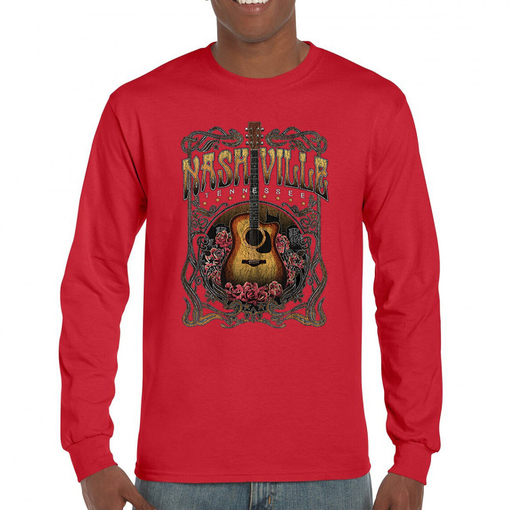 Vintage Nashville Tennessee design with rustic guitar and roses. Great for concerts, country music fans, road trips, and souvenir wear.