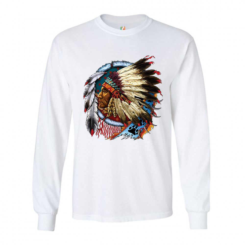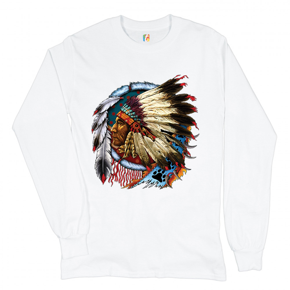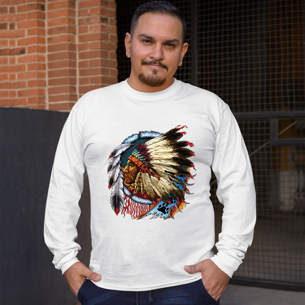 NATIVE AMERICAN CHIEF long sleeve t-shirt war bonnet dreamcatcher indigenous white