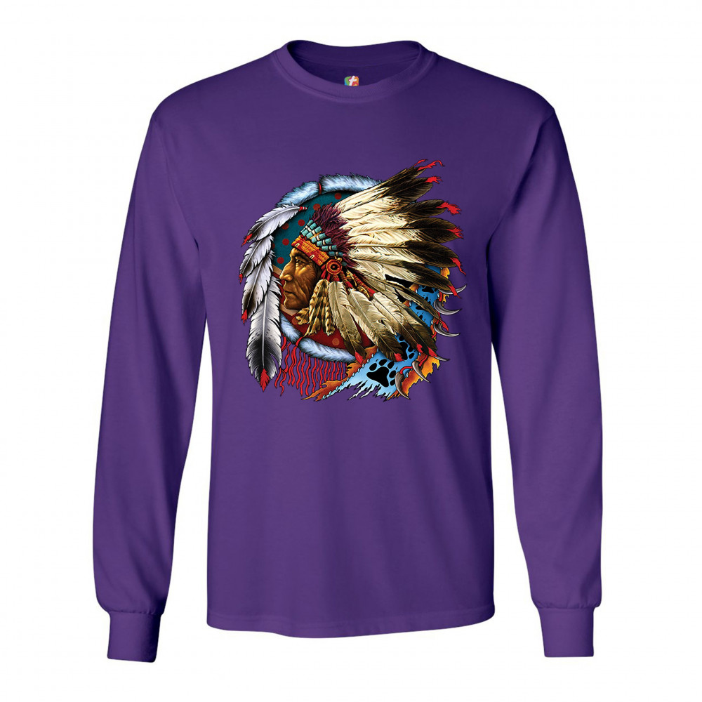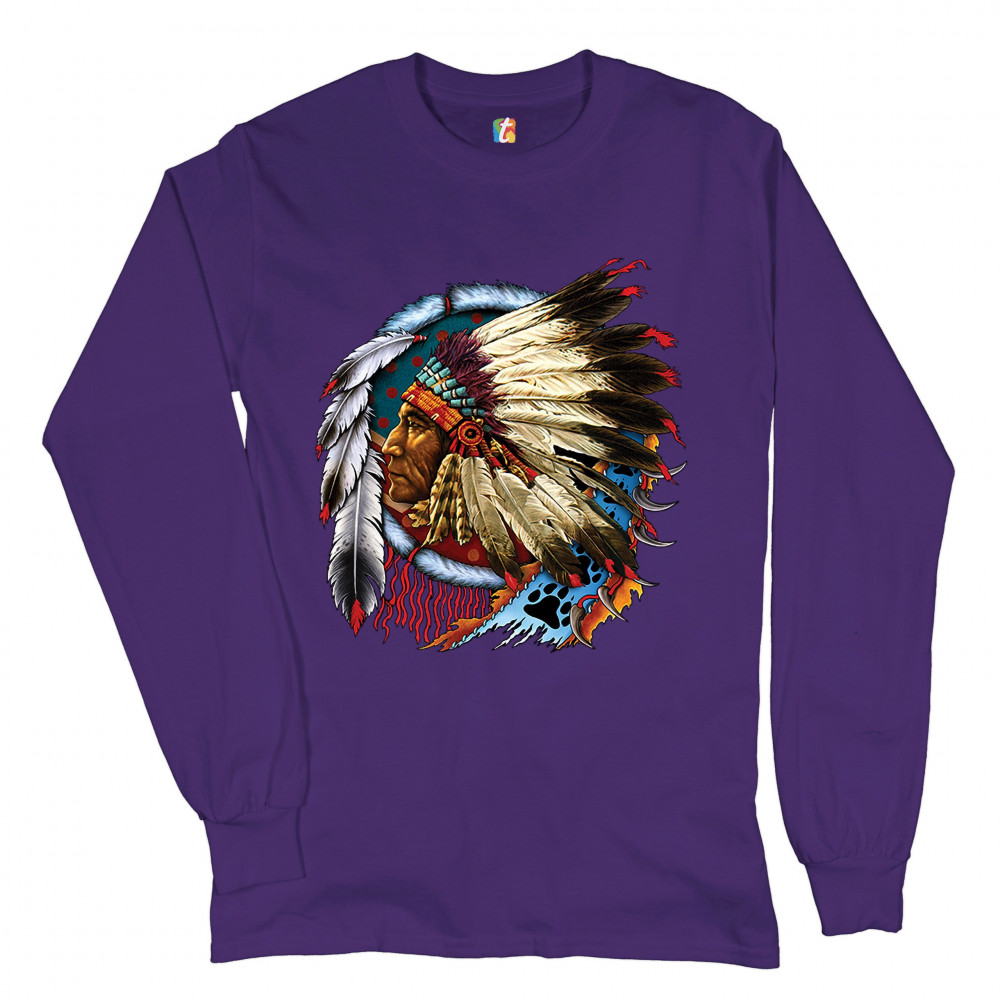 NATIVE AMERICAN CHIEF long sleeve t-shirt war bonnet dreamcatcher indigenous purple