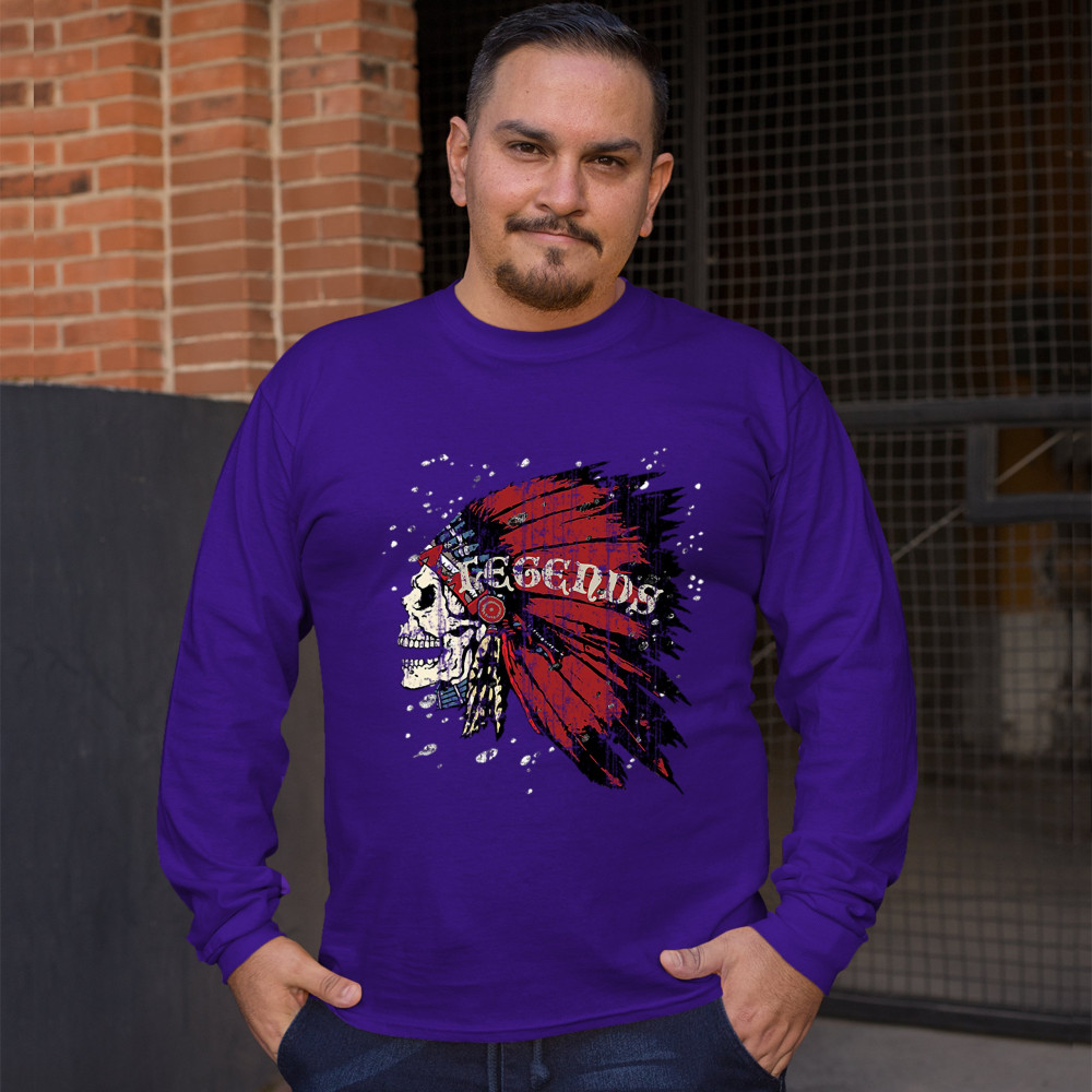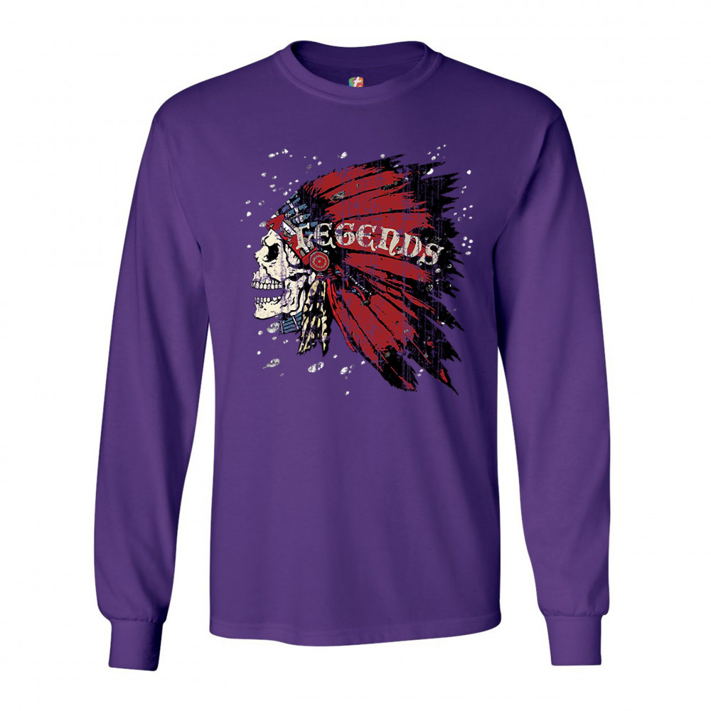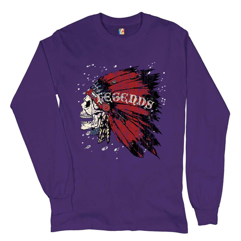 NATIVE AMERICAN LEGENDS long sleeve t-shirt skull face war bonnet headdress purple