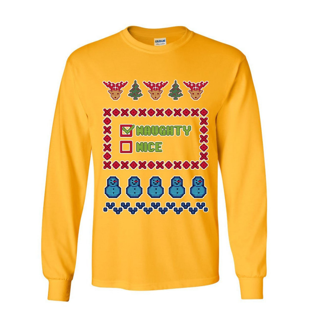 NAUGHTY OR NICE ugly sweater long sleeve t-shirt christmas xmas holiday list tee yellow