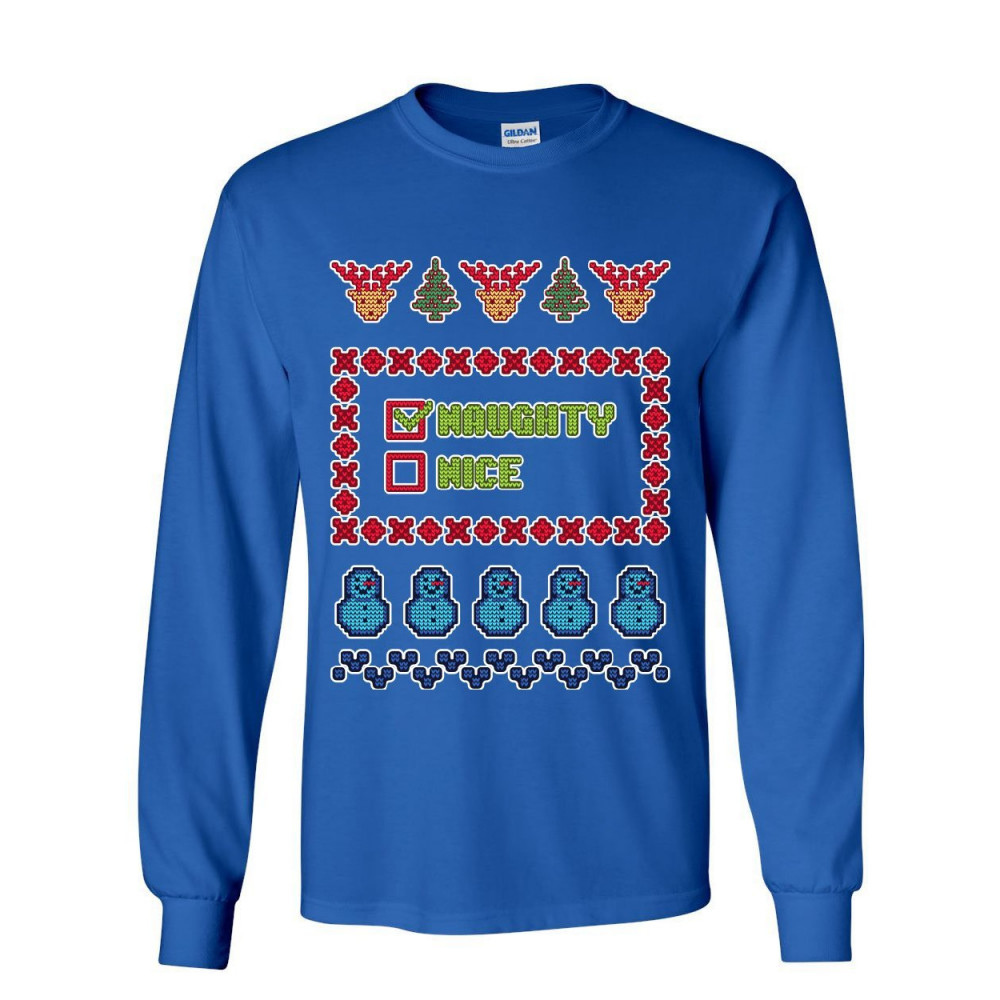NAUGHTY OR NICE ugly sweater long sleeve t-shirt christmas xmas holiday list tee royal blue