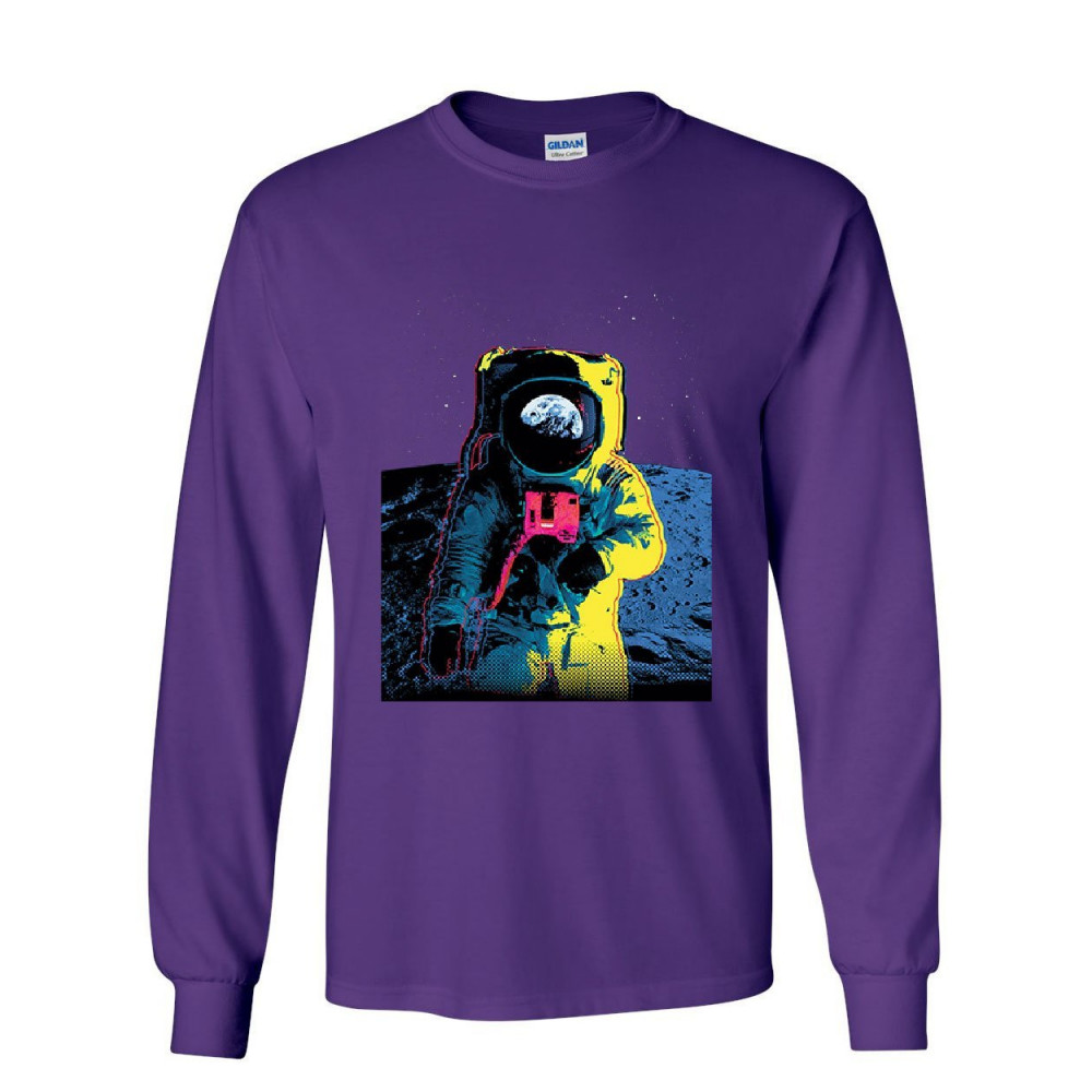NEON ASTRONAUT long sleeve t-shirt moon landing space travel universe earth tee purple