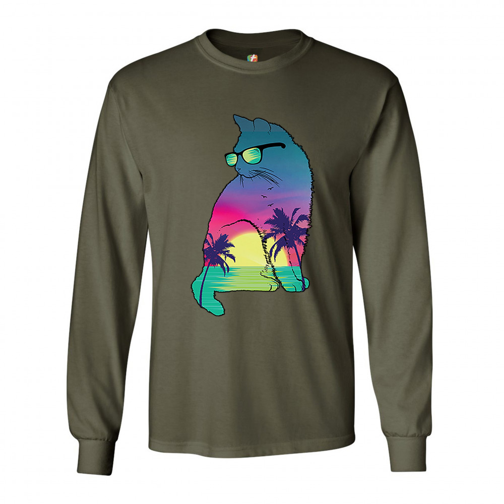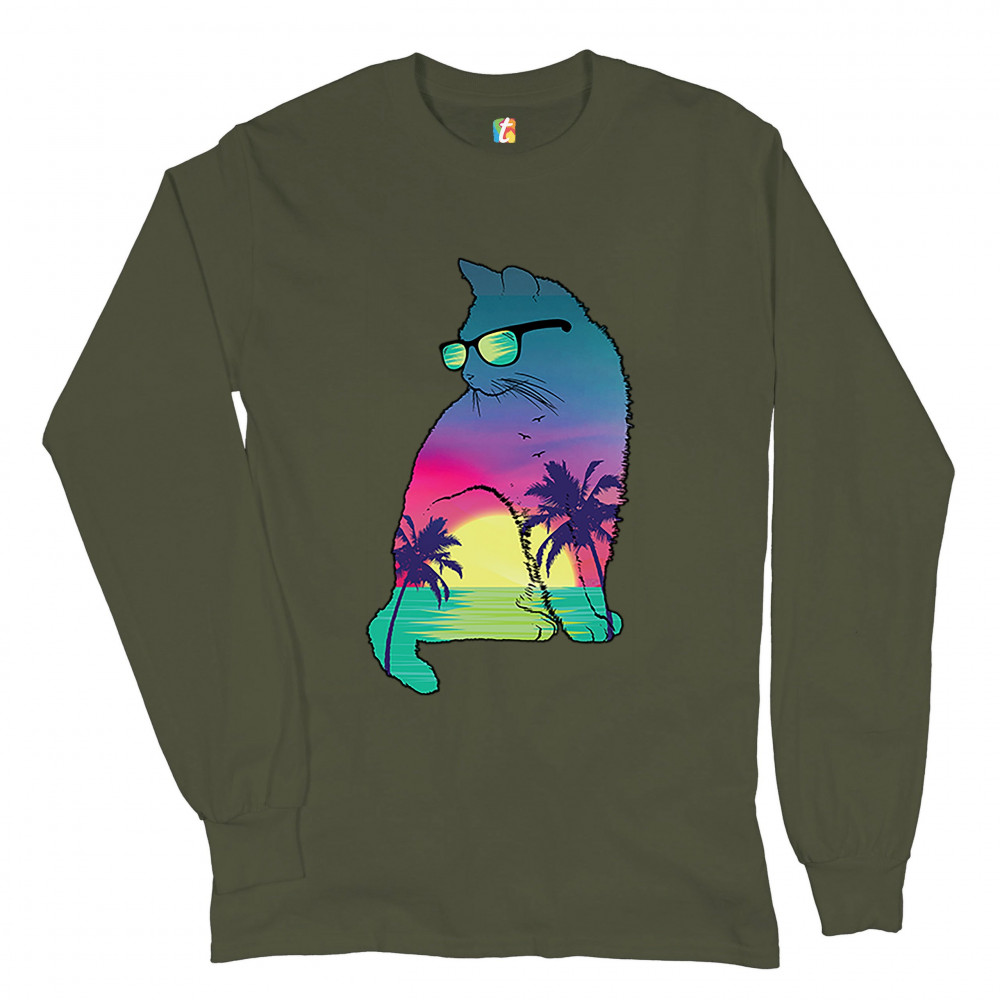 NEON CAT IN SUNGLASSES long sleeve t-shirt tropic kitten summer beach kitty military green