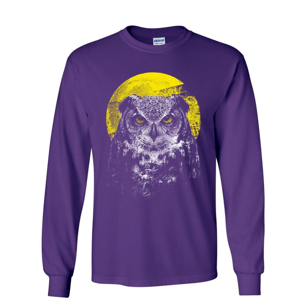 NIGHT OWL long sleeve t-shirt bird nature wildlife wilderness wisdom moon tee purple