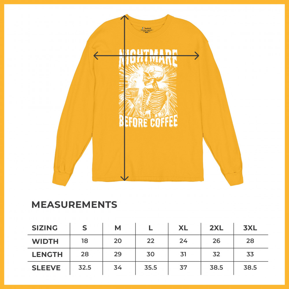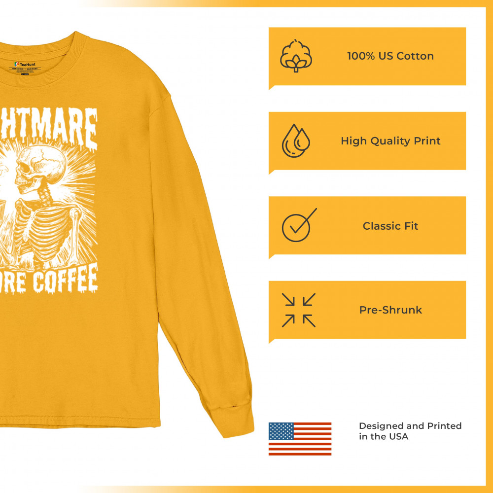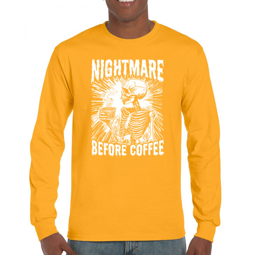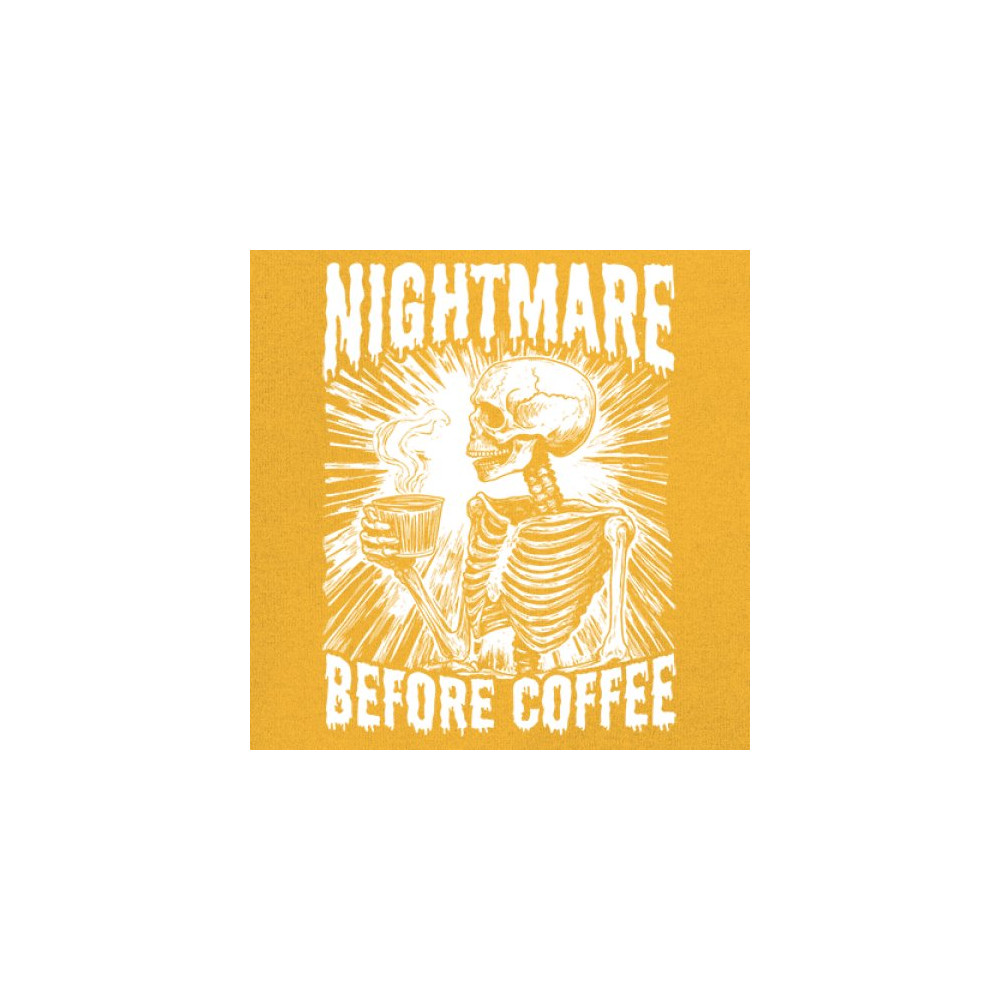Show off your love for coffee with this quirky "Nightmare Before Coffee" skeleton design, blending humor and gothic style for caffeine lovers.
