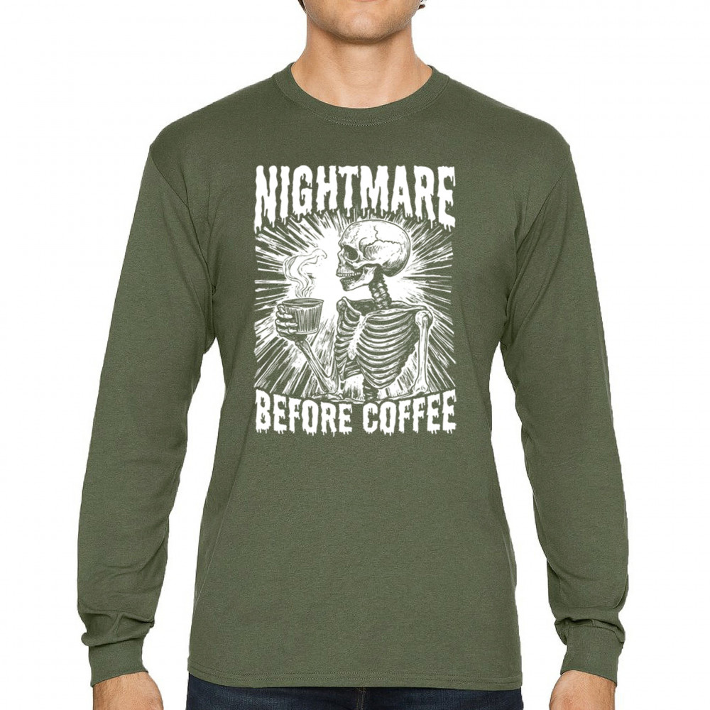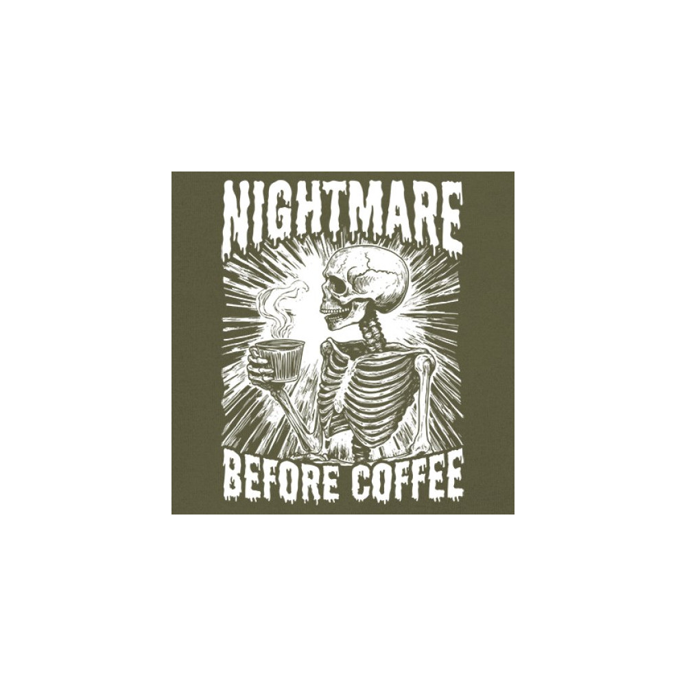 Show off your love for coffee with this quirky "Nightmare Before Coffee" skeleton design, blending humor and gothic style for caffeine lovers.