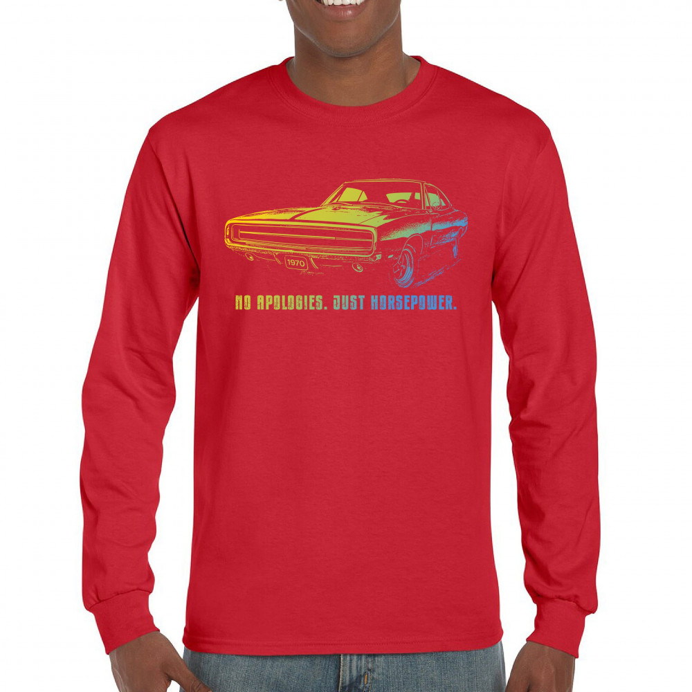 Bold 1970 muscle car design with gradient pop. No apologies, just horsepower—perfect for car shows, gearheads, and performance lovers.
