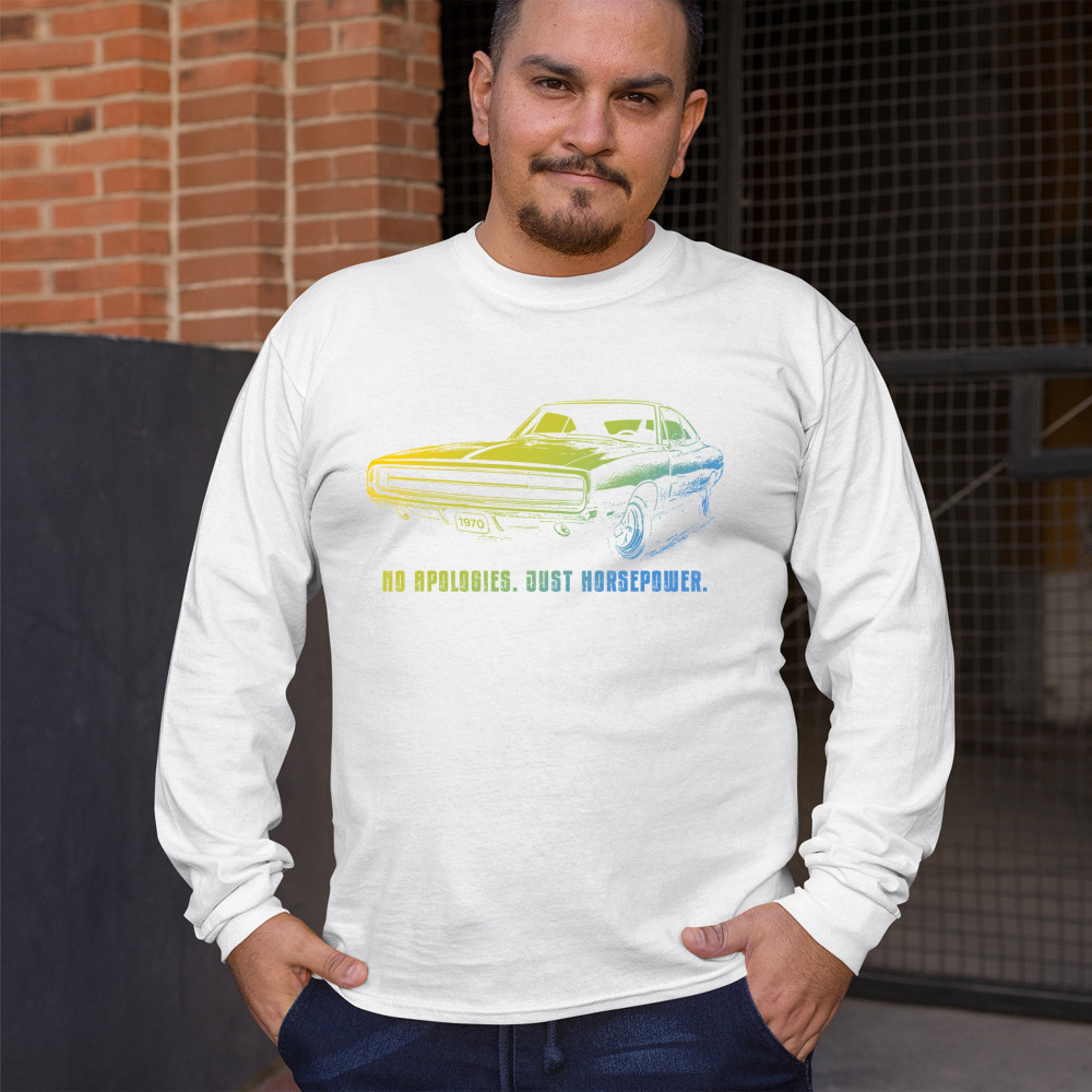 Bold 1970 muscle car design with gradient pop. No apologies, just horsepower—perfect for car shows, gearheads, and performance lovers.