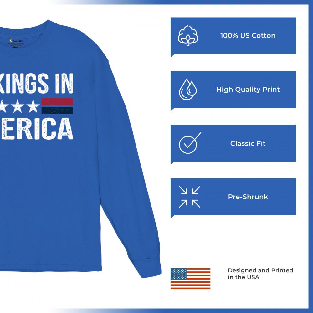 Bold No Kings in America patriotic design. Perfect for 4th of July, protests, civic pride, and freedom-loving Americans.