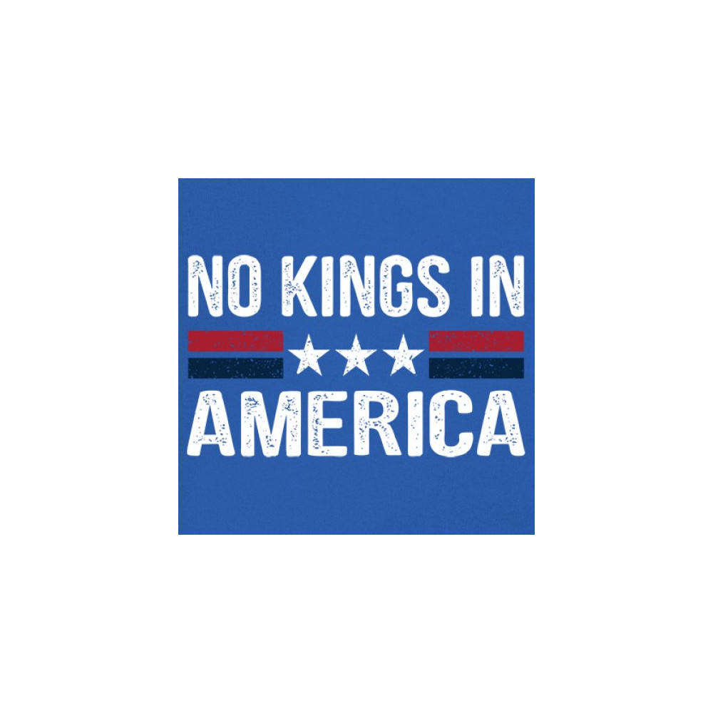 Show your patriotic spirit with the "No Kings in America" design—a bold declaration of freedom and civic pride. Featuring classic red, white, and blue tones, it's perfect for Fourth of July celebrations, political events, or history lovers. Celebrate democracy and independence with style and purpose.