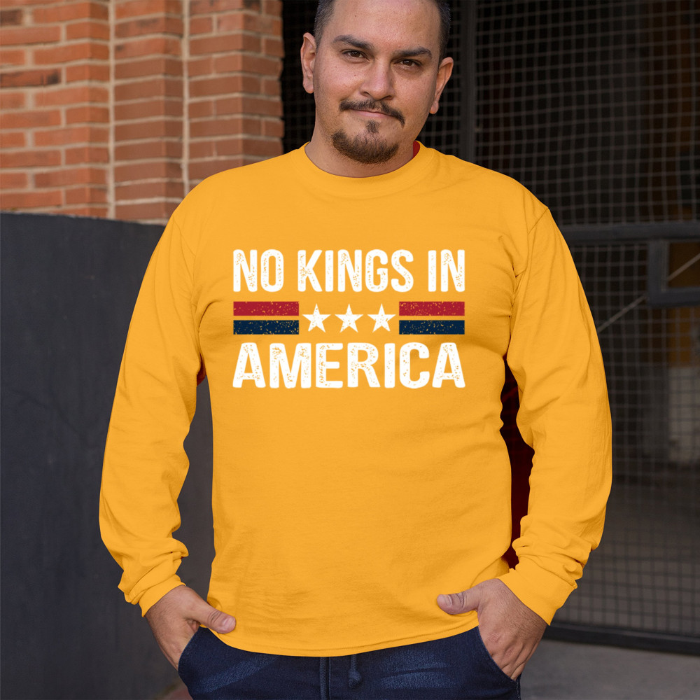 Bold No Kings in America patriotic design. Perfect for 4th of July, protests, civic pride, and freedom-loving Americans.