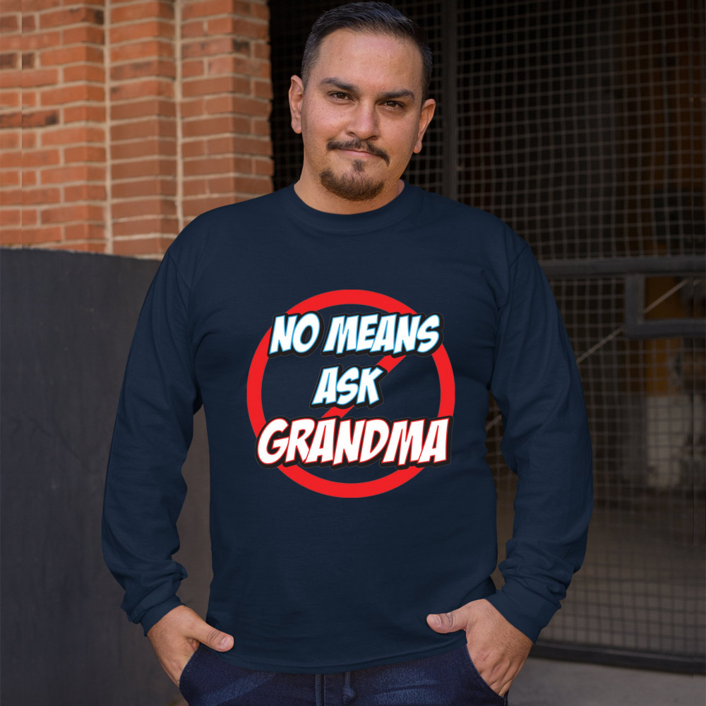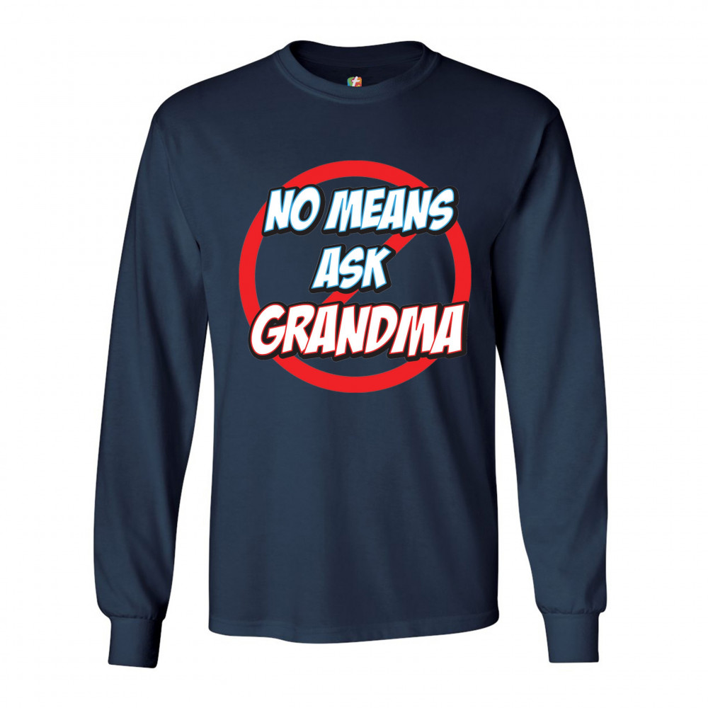 NO MEANS ASK GRANDMA long sleeve t-shirt granny mother's day funny mimi nana navy blue