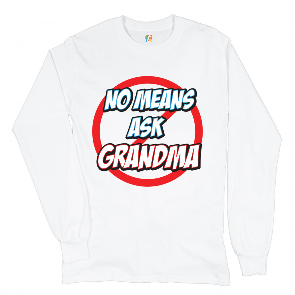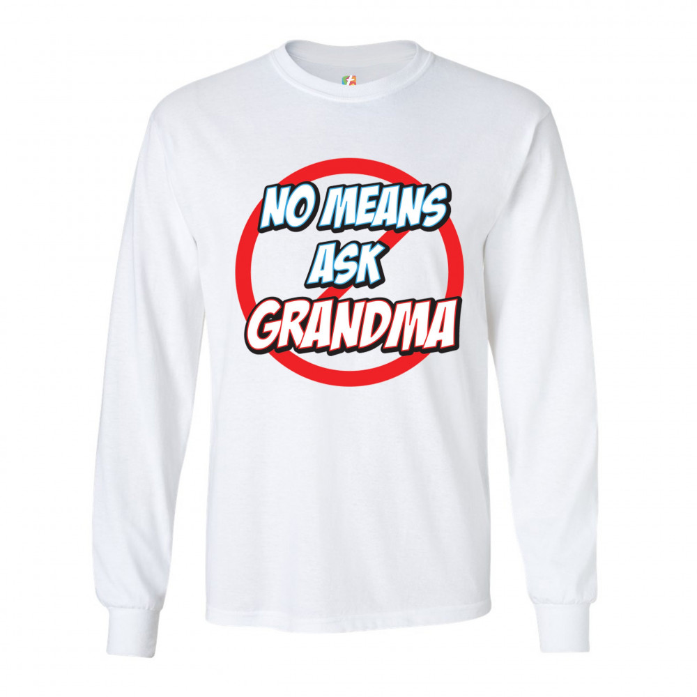 NO MEANS ASK GRANDMA long sleeve t-shirt granny mother's day funny mimi nana white