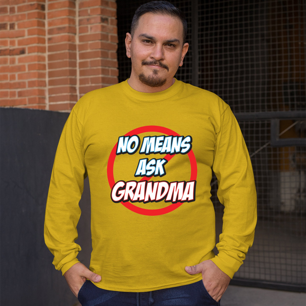 NO MEANS ASK GRANDMA long sleeve t-shirt granny mother's day funny mimi nana yellow
