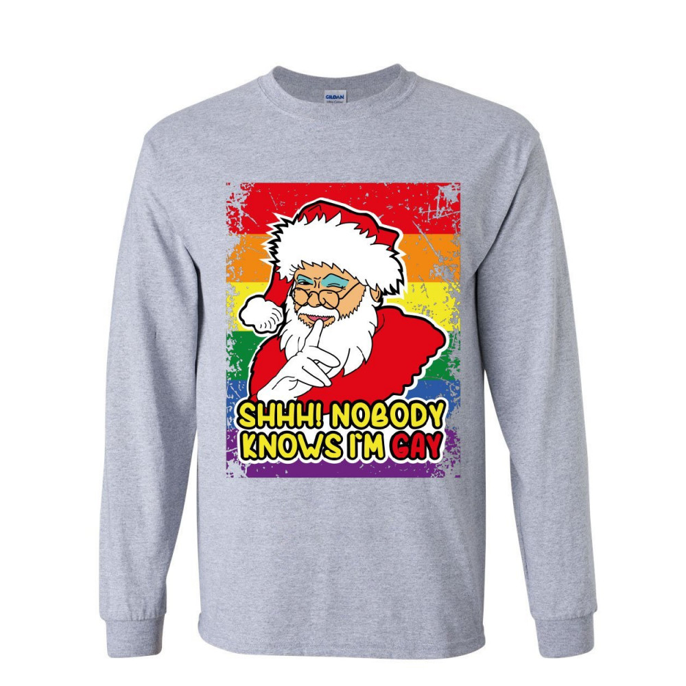 NOBODY KNOWS I'M GAY long sleeve t-shirt christmas santa lgbt xmas ho ho ho tee gray