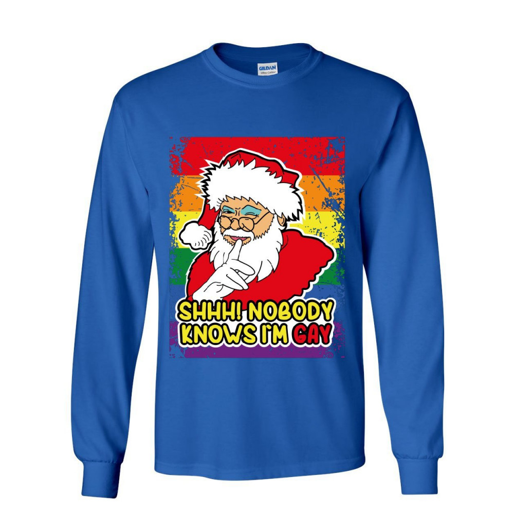 NOBODY KNOWS I'M GAY long sleeve t-shirt christmas santa lgbt xmas ho ho ho tee royal blue