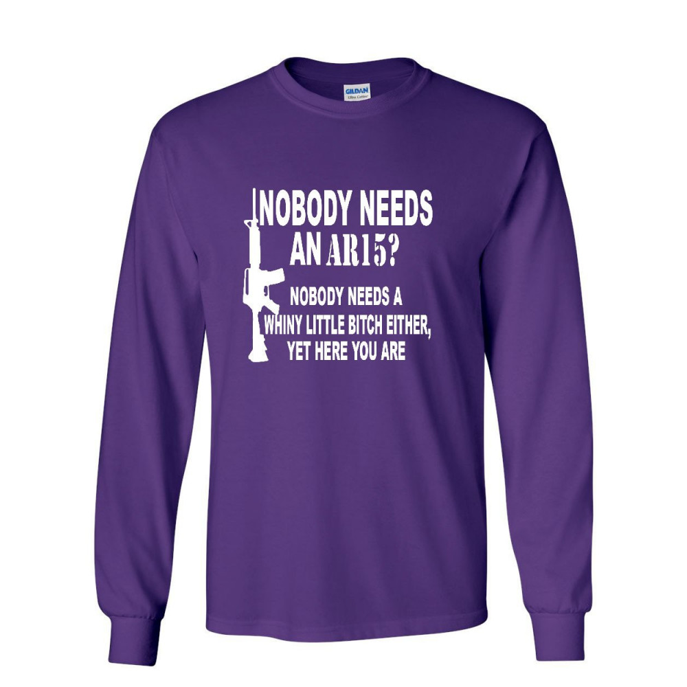 NOBODY NEEDS AN AR15? long sleeve t-shirt funny offensive humor political firearms gun rights purple