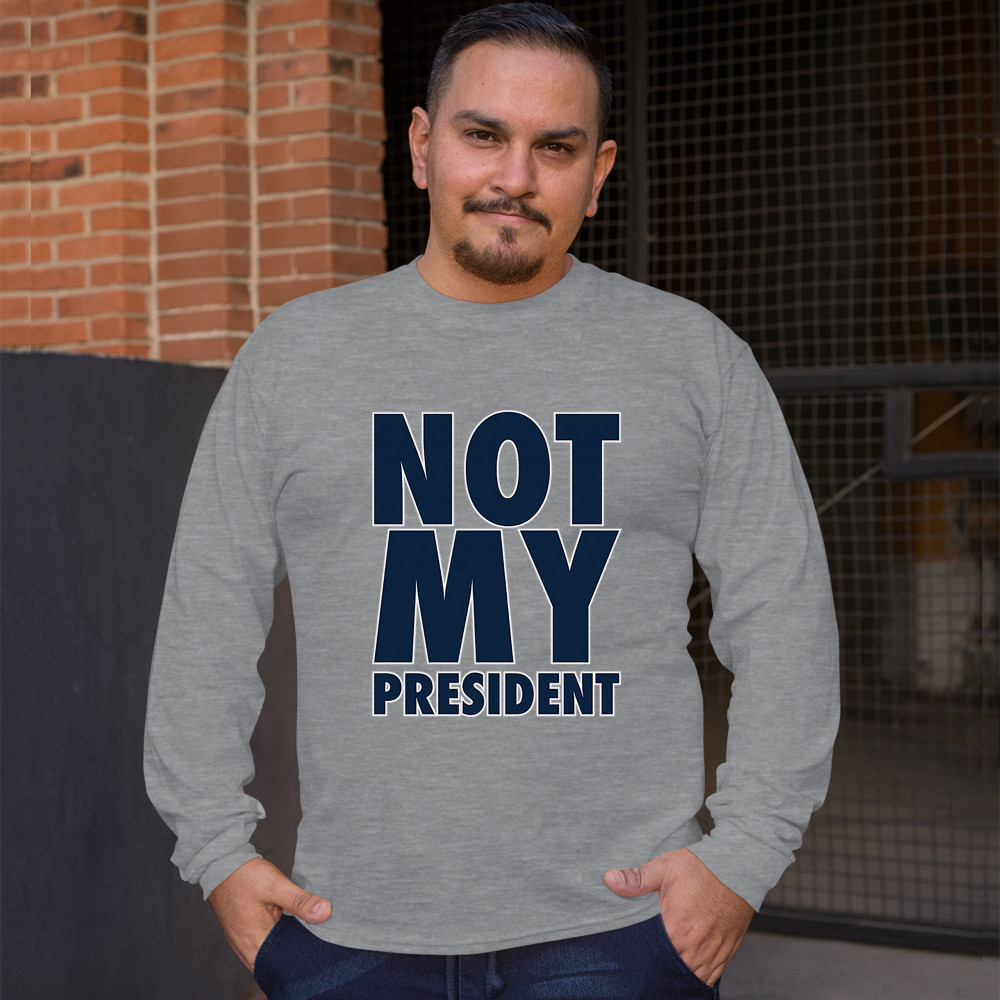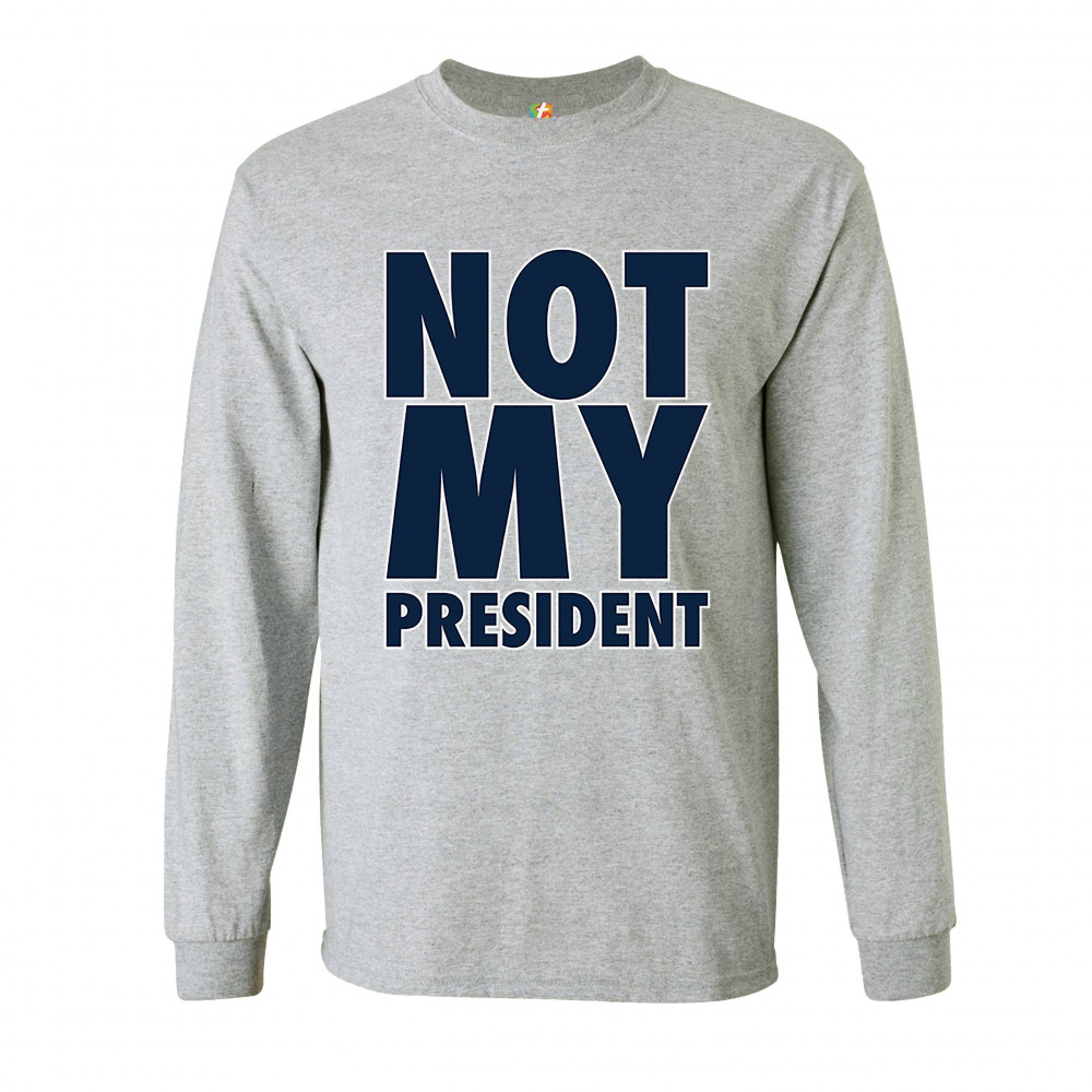 NOT MY PRESIDENT long sleeve t-shirt anti biden impeach pro trump deplorable gray