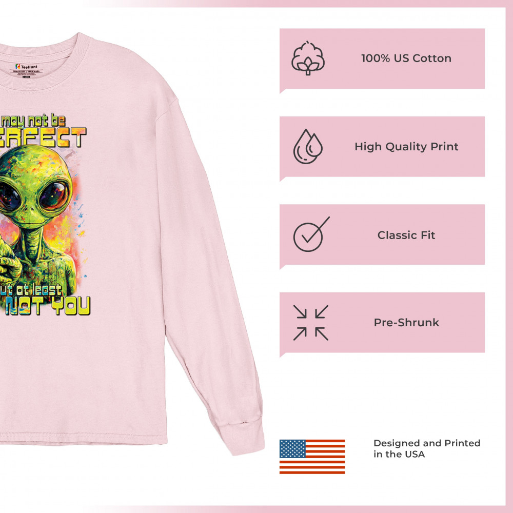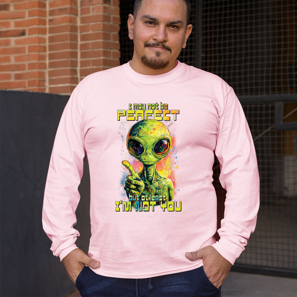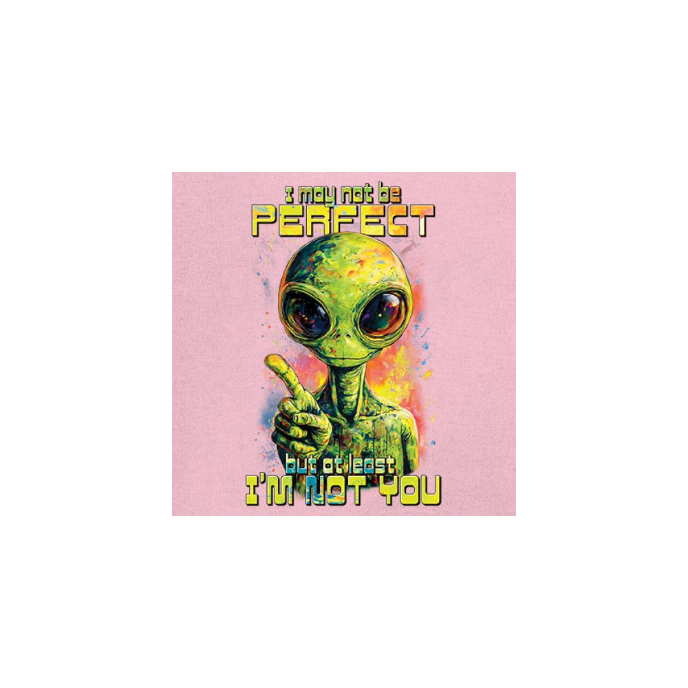 This smug alien design delivers sharp sarcastic humor with vibrant cosmic flair. Featuring a big-eyed extraterrestrial and the quote “I may not be perfect, but at least I’m not you,†it’s perfect for sci-fi fans, alien lovers, jokesters, and oddballs alike. A bold, funny statement for parties, UFO events, and festivals.