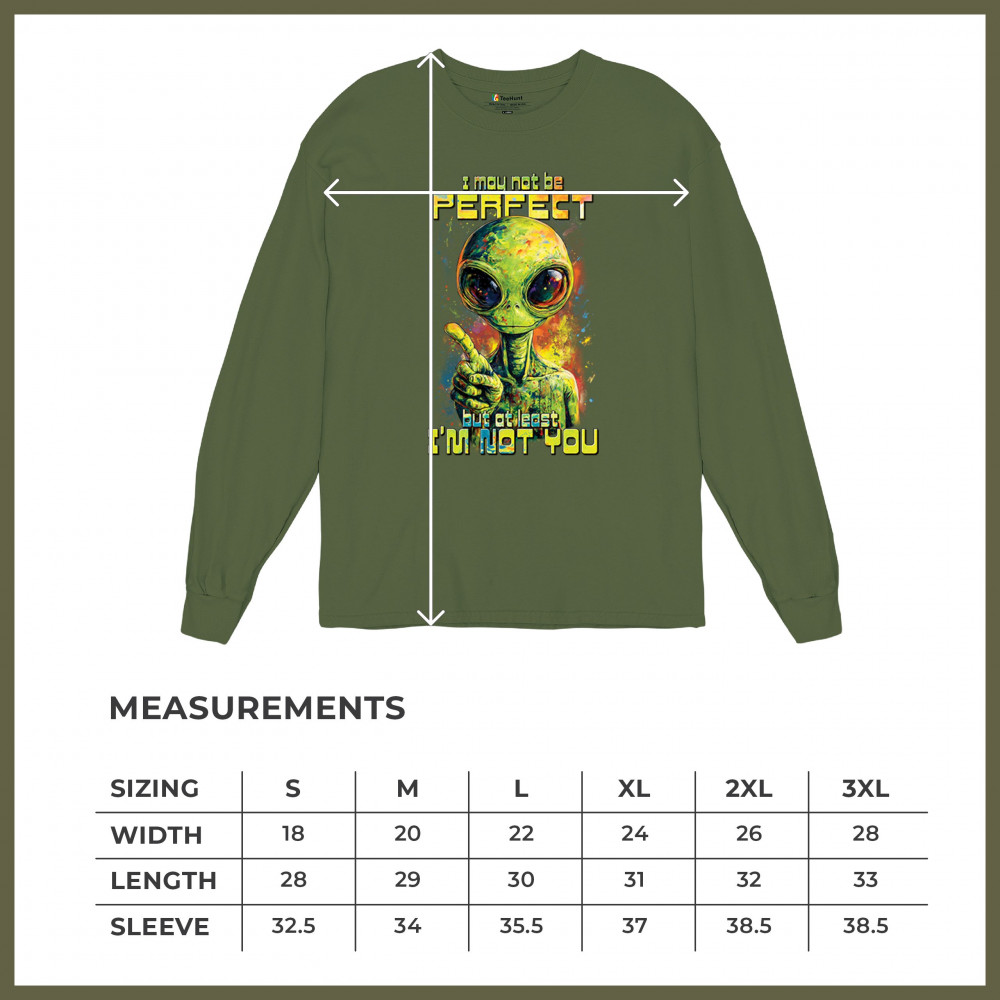 This smug alien design delivers sharp sarcastic humor with vibrant cosmic flair. Featuring a big-eyed extraterrestrial and the quote “I may not be perfect, but at least I’m not you,†it’s perfect for sci-fi fans, alien lovers, jokesters, and oddballs alike. A bold, funny statement for parties, UFO events, and festivals.